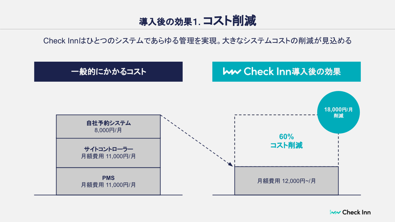 ツールを一本化することで業務効率化・コスト削減に貢献し、宿泊施設の可能性を向上します。