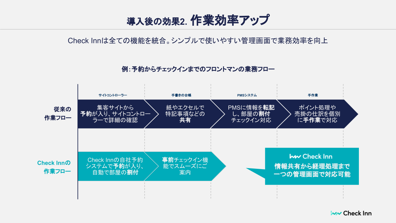 そんな現状の課題を解消すべく我々が開発したのがオールインワンツール「Check Inn」です。