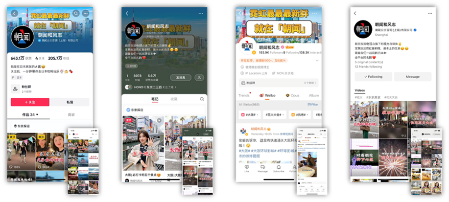 ■ フォロワー総数約230万人。Douyin、RED、Weibo、Shipinhaoの4つのメジャープラットフォームで展開し、日本の様々な地域の魅力、情報を発信しています。