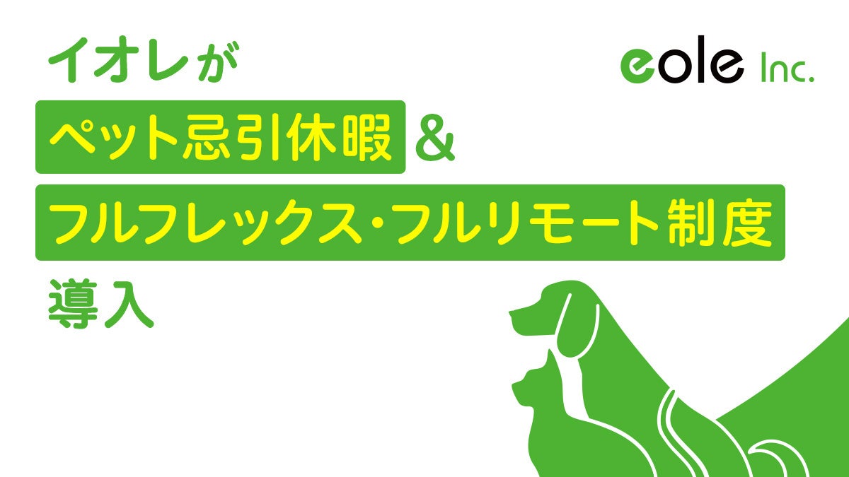 ペット旅行専門メディア「休日いぬ部」や愛犬家向け情報メディア「Perrole」を運営する株式会社イオレ(本社:東京都中央区、代表取締役社長:冨塚 優、以下イオレ)は、9月1日より新たに『ペット忌引休暇』制度や、これまでのコアタイムを廃止したフルフレックス・フルリモート制度を導入しました。