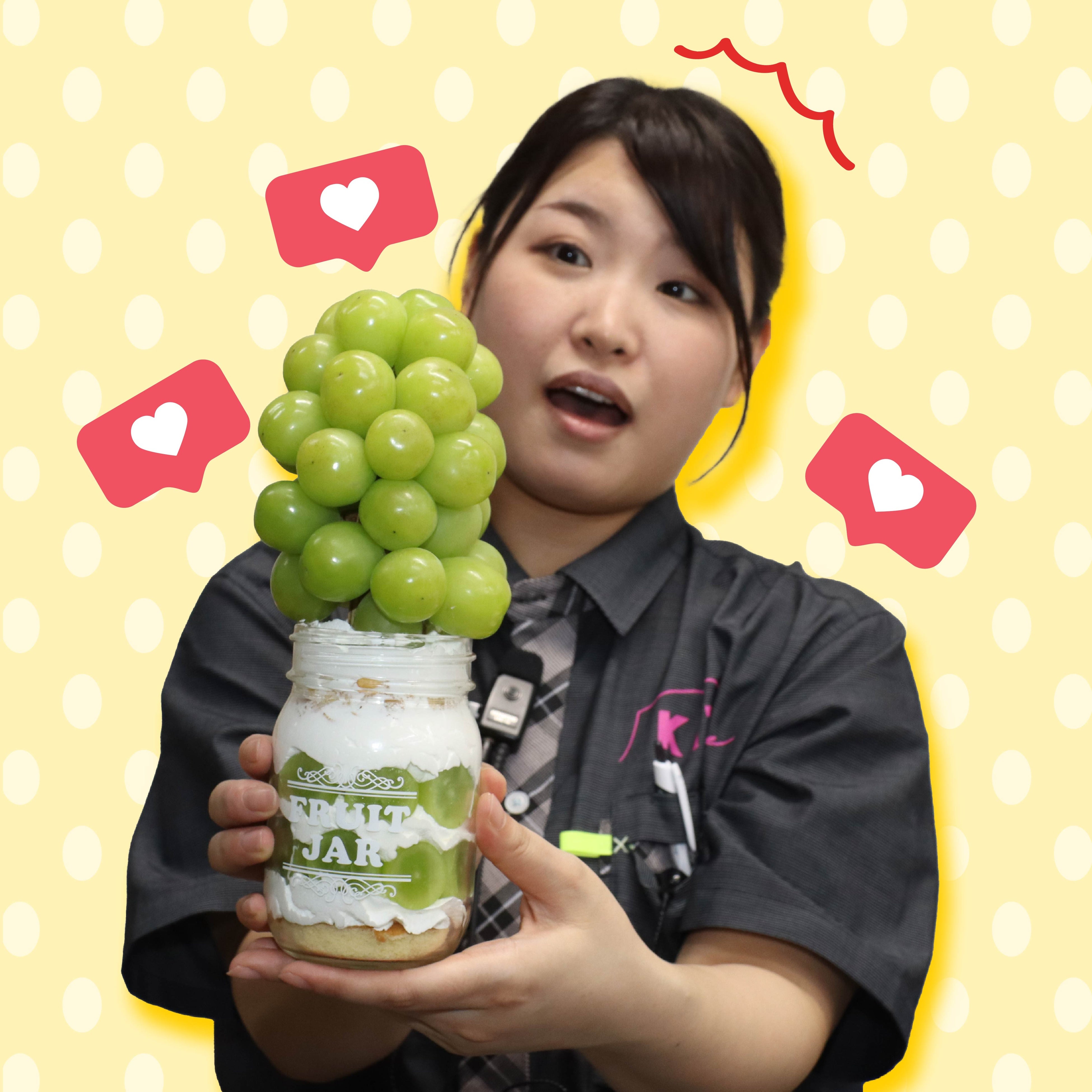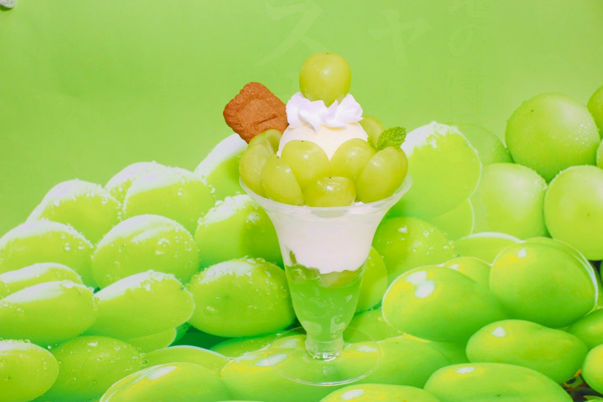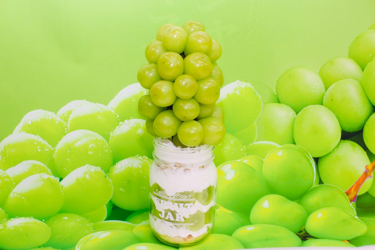 まるごと1房のシャインマスカットが上に乗り、ホイップの下には10粒のマスカットがエレガントに隠れていて、まさにインスタ映え間違いなしの1品です。