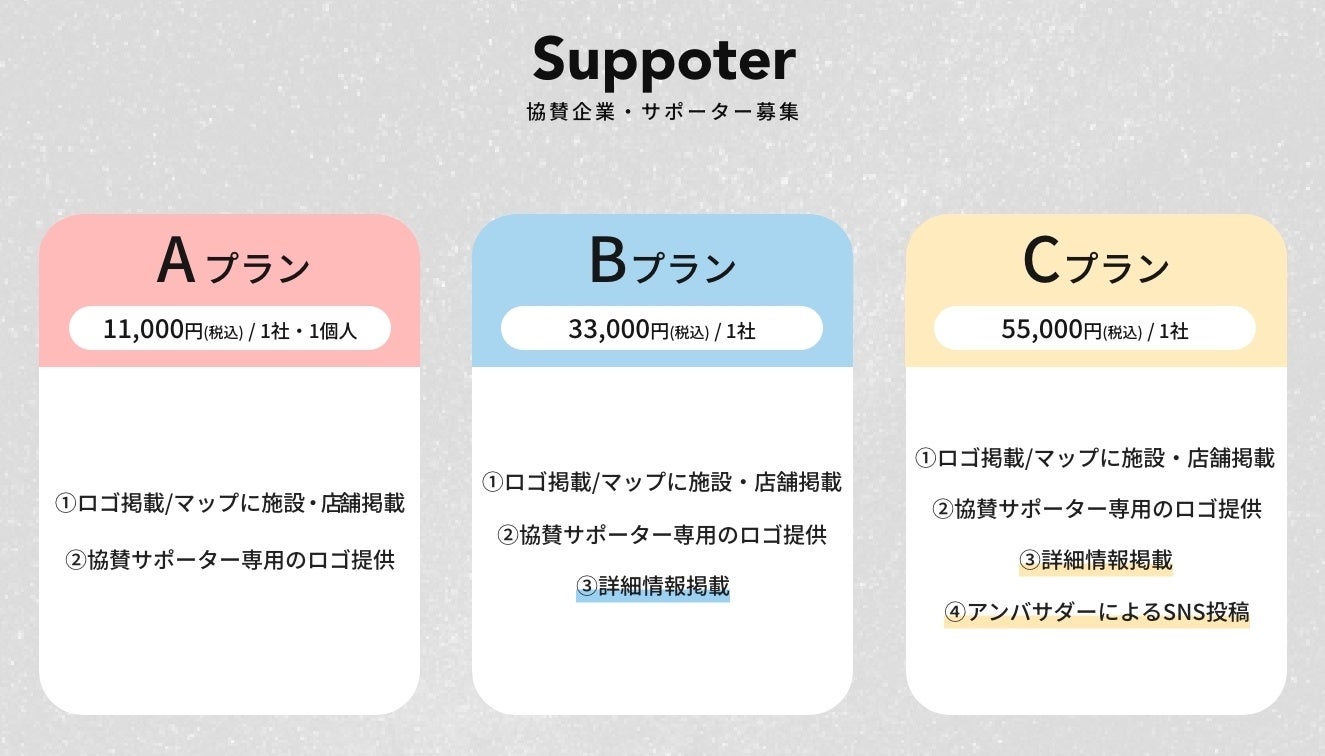 ※サポーター様(個人)の場合、Aプランのみとなり、お名前を掲載させていただきます。