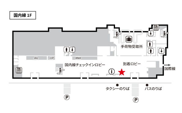 国内線到着口を背に、「空港バス案内所」左横への設置となります。