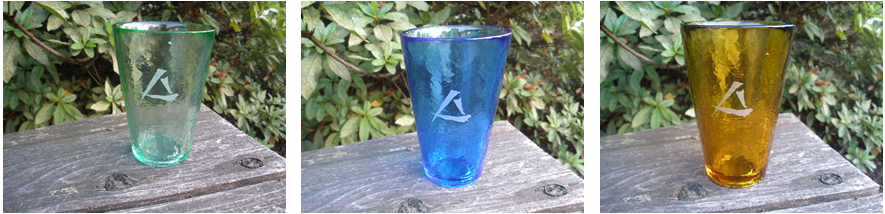 今回コラボ制作をしていただいたブランド「Re:GLASS.」は地球の資源を大切に使おうというガラス原料のリユースを目的としたシリーズです。キズや泡、サイズ違いなどで製品になれなかったガラスや加工途中で割れてしまったガラスなどをブルー・グリーン・セピア、それぞれを同色の系統でまとめて溶かしたものから製品として生まれ変わらせたもの。同じ色でも濃さや色味はさまざまで2つとない色合いをお愉しみいただけます。