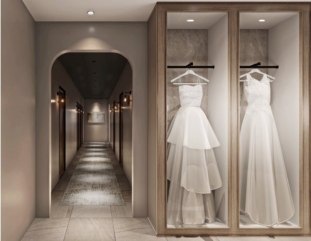 ブースごとに異なるテイストの家具を配置することで、訪れる度に気分を変えて打ち合わせを楽しむことができます。また、エントランスとウエディングブースつなぐ場所には季節ごとの展示や旬な情報をお届けするためのディスプレイエリアをご用意。訪れる度に気分を変えて打ち合わせを楽しむことができ、何度も足を運びたくなるようなウエディングサロンとなっています。