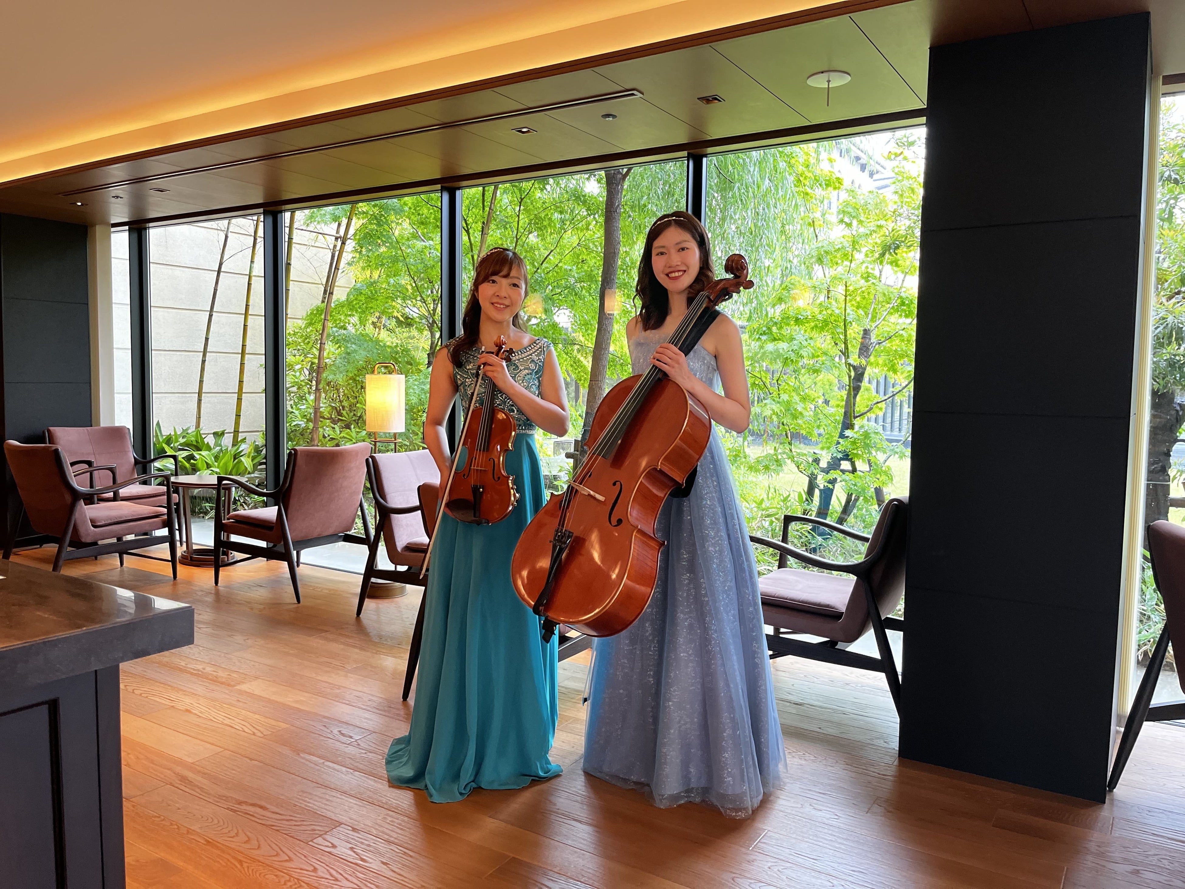 夕刻のゲストラウンジ、朝食レストラン、京都の西山を望むテラスでの朝、管弦楽の心地よい響きをお届けいたします。ステージの上でない目の前での演奏に、演奏者の表情やリズムの取り方など間近にご覧いただけます。音楽を耳だけではなく、視覚的にも楽しめる生演奏です。