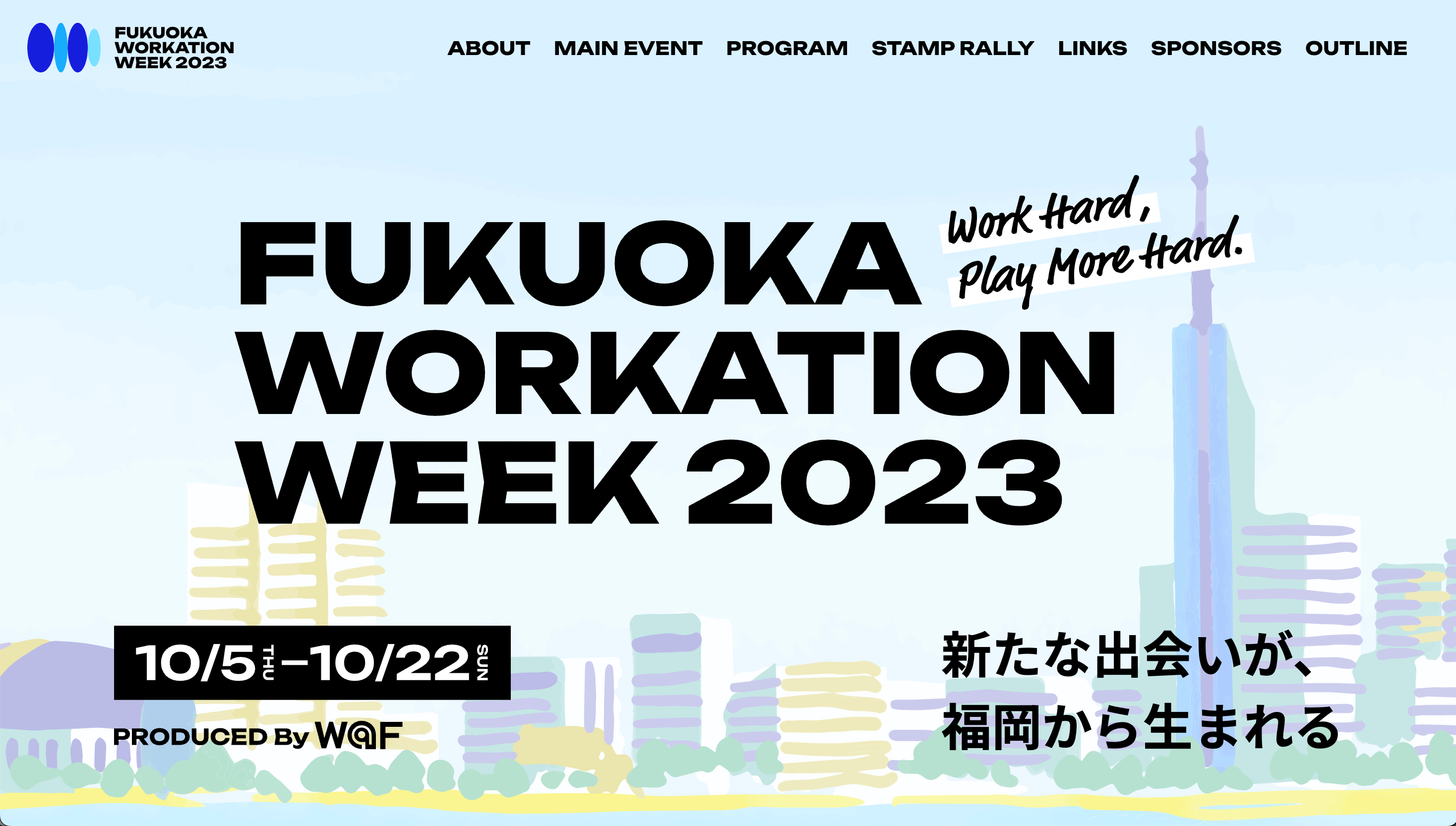 ・内容:「FUKUOKA WORKATION WEEK」は、福岡市内で開催される、ワーケーションを通じた”人”と”人”との交流や、新たな出会いを生み出すイベントです。期間中、福岡市や福岡観光コンベンションビューロー、ワーケーション推進のパートナー企業等が主催する魅力的なワーケーション関連イベントが多数開催されます。開催期間に合わせ、10月5日〜22日の間、デジタルスタンプラリーも実施。このラリーでは、福岡市内のワークスペースやイベント会場、提携店舗をスタンプスポットとして設定し、福岡型ワーケーションを存分に楽しむことができます。スタンプをたくさん集めた方は、素敵なプレゼントがGETできます!