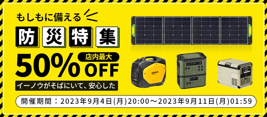 当店では、防災用具を開発しており、ポータブル電源や発電機など、安全を考えた製品をご提供しております。 関東大震災100年と楽天スーパーセールを契機に、全店舗最安値挑戦をいたします。