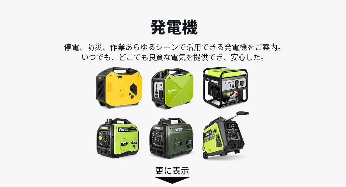 取扱い商品:ポータブル電源、ソーラーパネル、発電機、照明器具、他