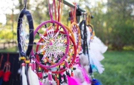 カナダの先住民オブジエ族に伝わるお守り「ドリームキャッチャー」をブリティッシュヒルズの教員と英語で作ります。異文化を学びながら、自然に英語にふれることができます。作ったドリームキャッチャーは、お土産にお持ち帰りいただけます。