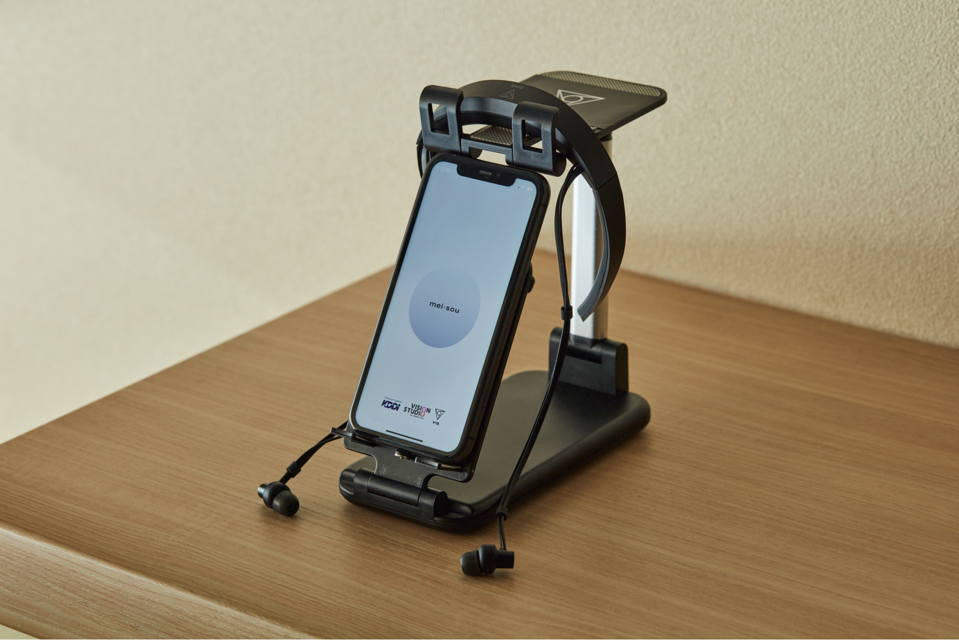 提供する瞑想サポートツールは、瞑想中の脳波を取得し、瞑想時の脳波状態にどのくらい近づいているかを音情報でリアルタイムにフィードバックしてより良い瞑想に導くイヤホン型脳波計「VIE Device」(開発:VIE STYLE株式会社)と、専用アプリ「mei-sou」(開発:KDDI株式会社)。感覚が研ぎ澄まされ自身を取り巻くさまざまな「音」に気づくようになる状態を体感することで、「心地よさ」の自覚を導きます。