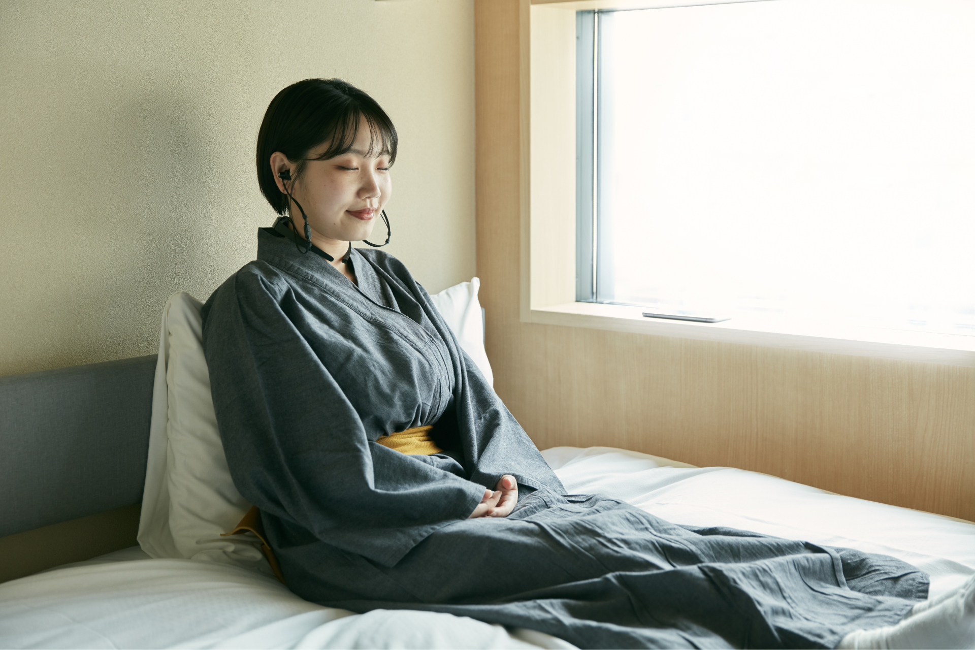 「ONSEN RYOKANで瞑想体験」では、瞑想体験をサポートするツールを宿泊のお客さまに提供することで、より質の高い養生の時間を過ごしていただける旅館体験の実現を目指します。