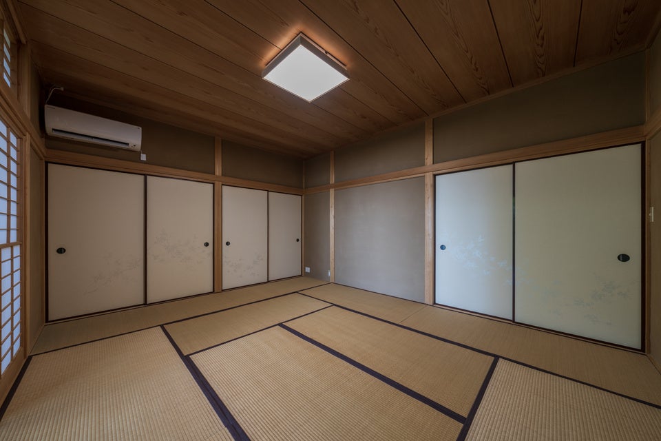 和風平屋建て5LDKの室内は、自然の美しさと和の風情が融合したデザインで特別な空間を演出。24帖の広々としたリビングルームには大きな窓が配置され、自然を感じられるあたたかな光が差し込みます。寝室は畳敷きの和室で日本の伝統的で上質なくつろぎをご提供します。和室から繋がる広縁からは、熱海の優雅な自然と海が広がる景色が楽しめます。