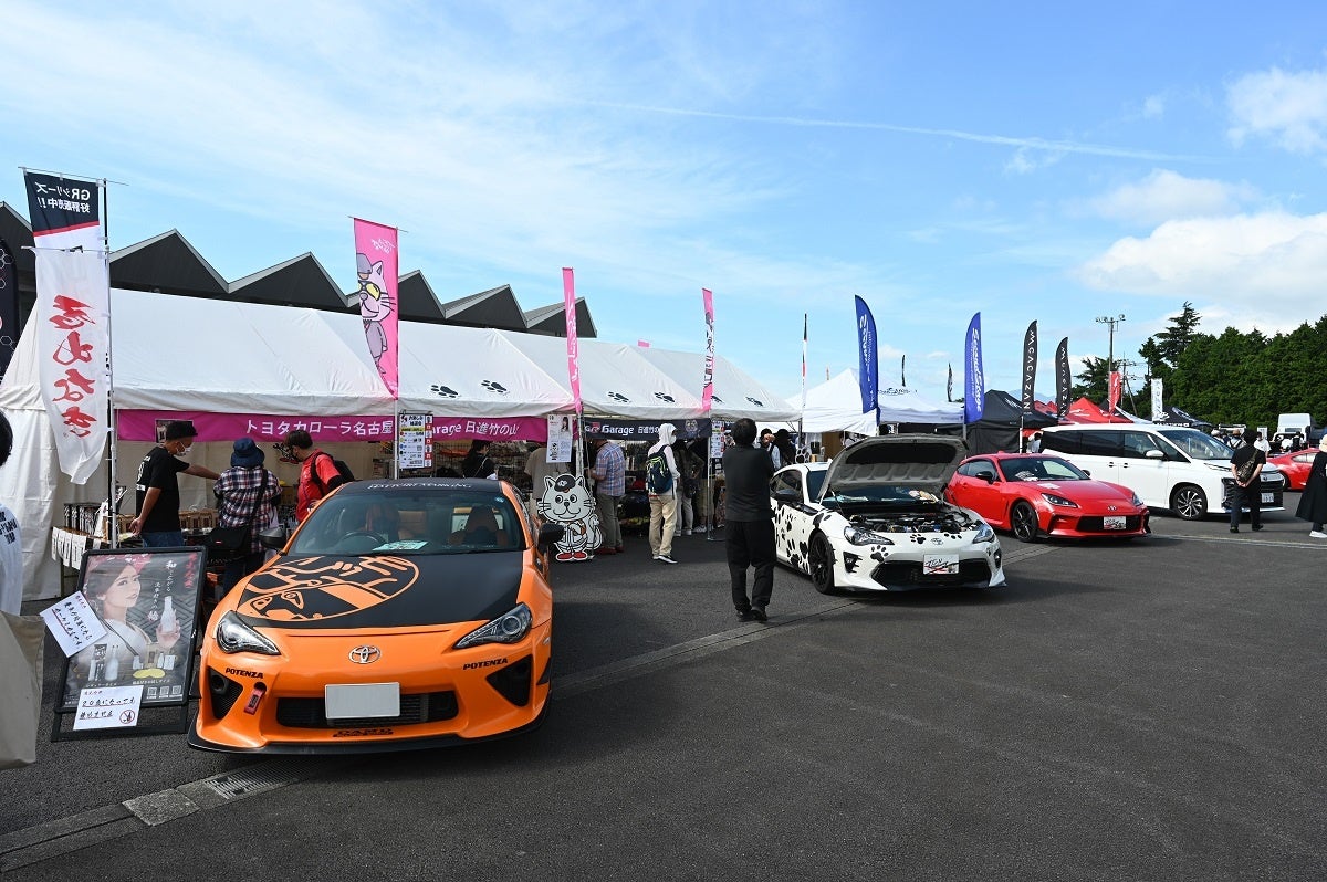 GR86やSUBARU BRZなどの各種グッズ、パーツ、アイテムのショップブースが多数出展し、様々なカラーリングに彩られ、チューニング・カスタマイズされたデモカーの展示も予定されています。