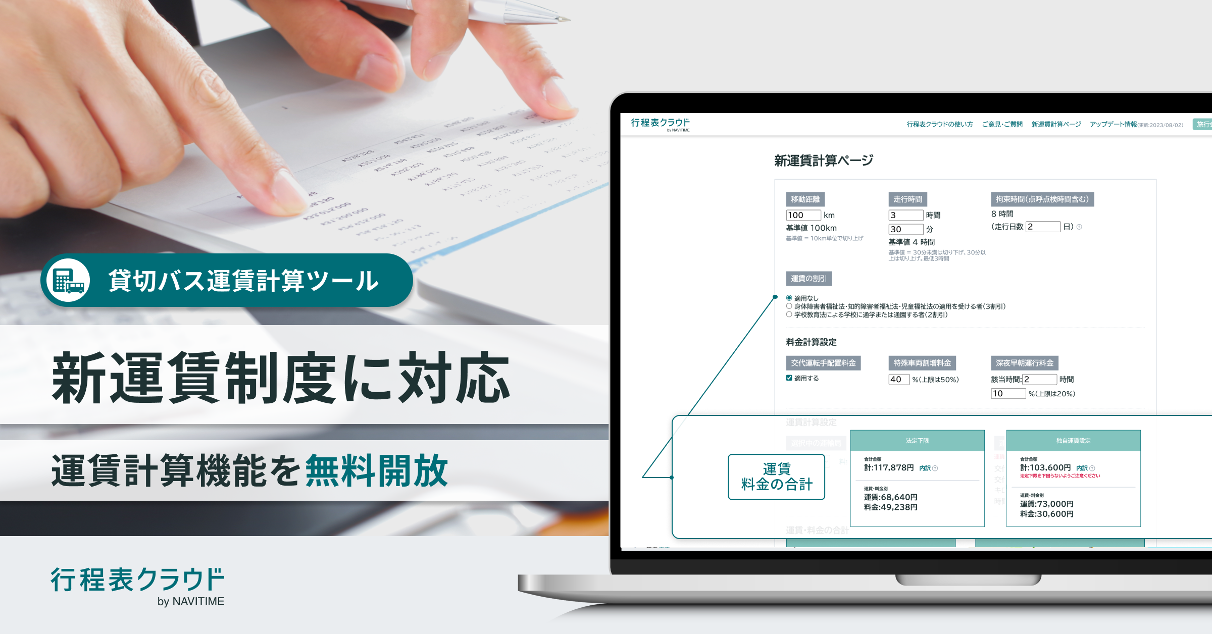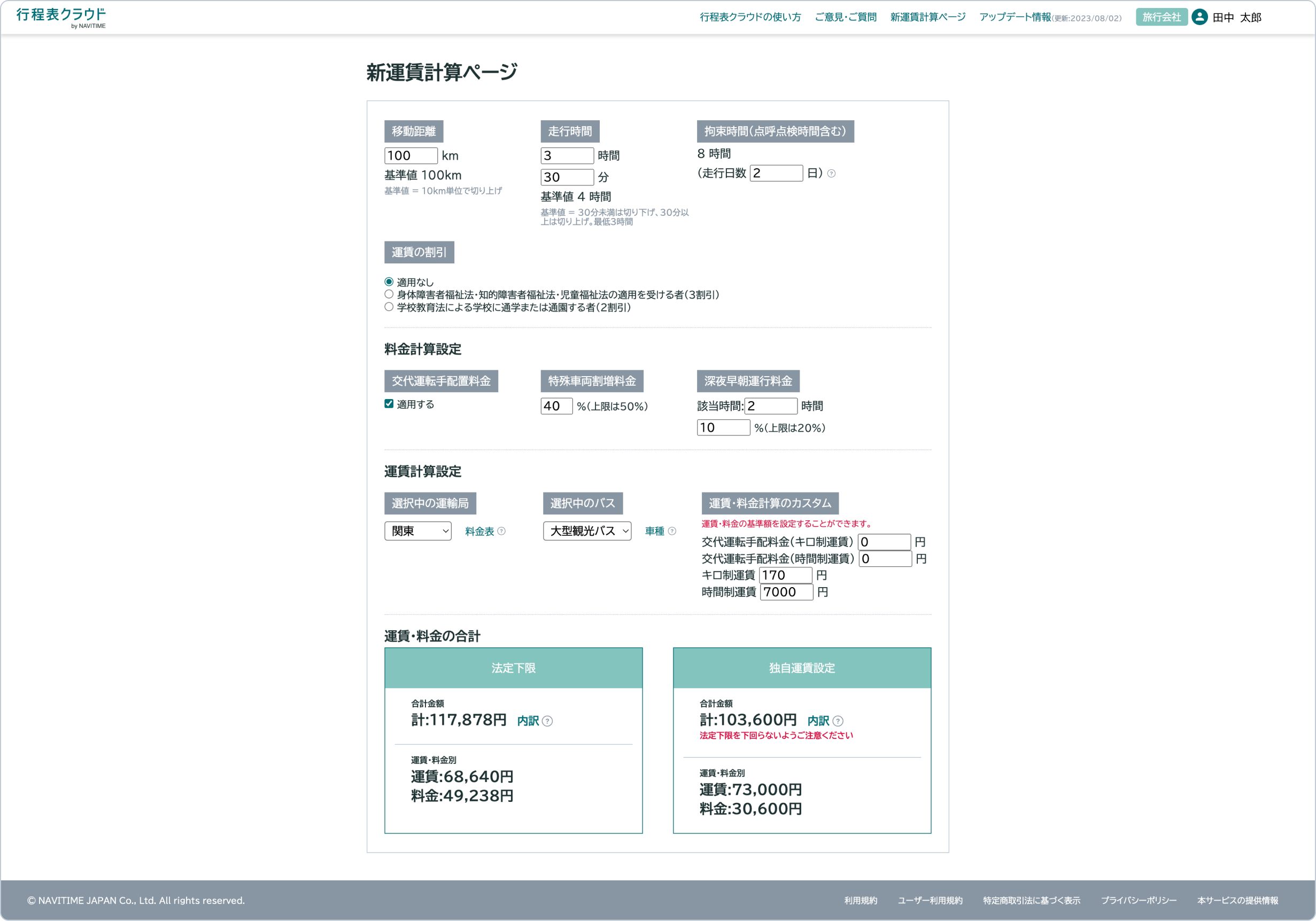 貸切バス運賃の計算方法は、国土交通省により規定され、運賃の下限割れ等による違反を抑止するための改善措置等が実施されています。2023年8月の国土交通省が定める「貸切バスの運賃・料金制度」の見直しにあわせた、新運賃に対応したツールを提供することで、運賃計算における法令順守を支援できればと考えています。