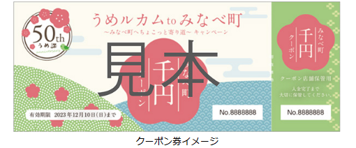 べ町のお土産屋などで使える『うめルカムto みなべ町クーポン券』(1,000円分)をプレゼ