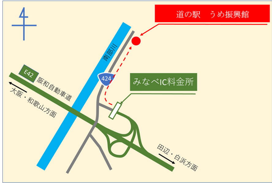 道の駅 うめ振興館へのアクセス・・・ E42阪和自動車道 みなべIC から車で約5分
