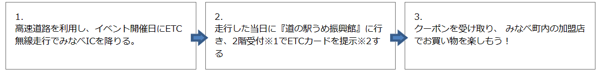 ※4  クーポンのお渡しはイベント開催日に限ります。またみなべIC出口を走行された当日のみの配布とさせてい