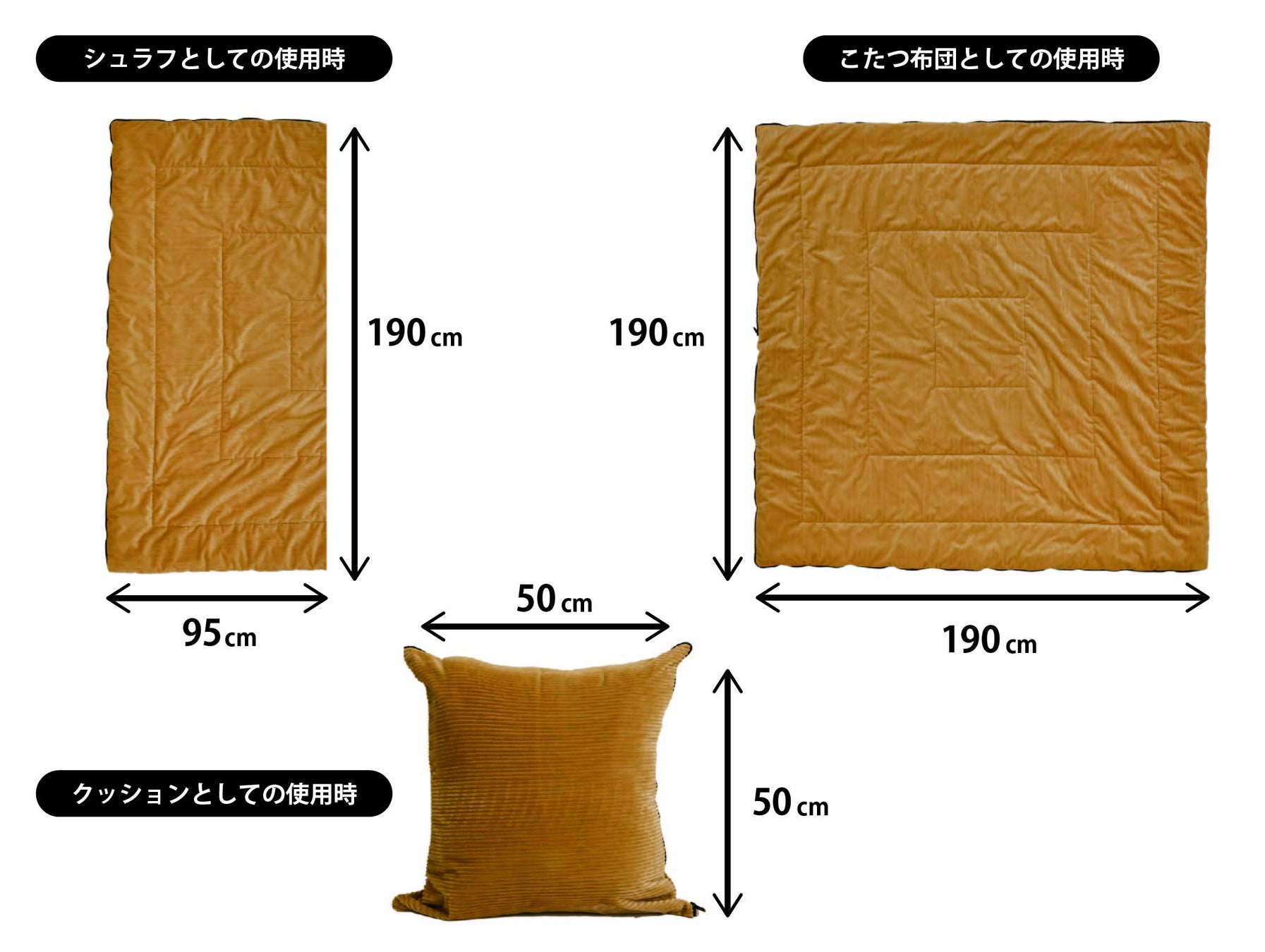 フルジップオープンすれば、正方形のこたつ布団に変身!