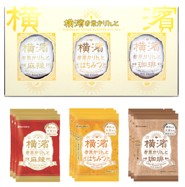 2021年11月の発売以来、横浜みやげとしてご好評をいただいている「横濱お米かりんと」シリーズより、9袋入りの詰合せが新登場いたします。