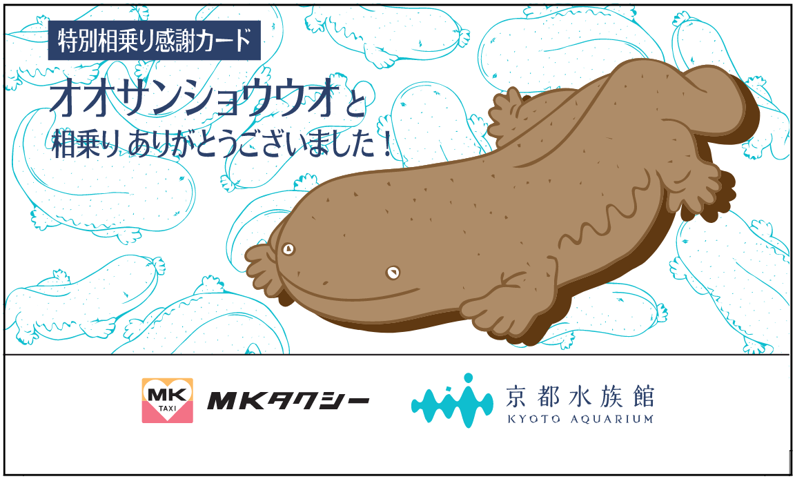 京都水族館さまのオオサンショウウオとのコラボタクシーは、タクシーでの移動の時間を少しでも楽しいものにしていただければと思い、参画させていただいております。