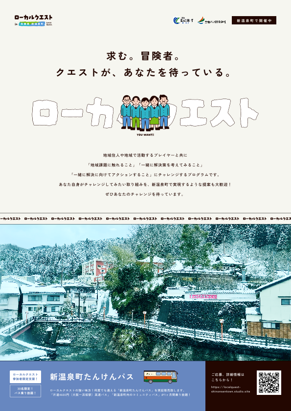 同サブスクプランは、当社が2023年6月19日に観光庁より公表された採択事業『地域課題で繋がる「ローカルクエスト」。バスのサブスクでより身近に、より通いやすく。』の実証を目的に展開するもので、地方自治体新温泉町と連携し、地域貢献プログラムを難易度別に幅広く造成。「ローカルクエスト」と銘打ち、サブスク利用による継続的な来訪を通じて関係人口の創出に取り組みます。「ローカルクエスト」は、4つの取り組みテーマ(①産品開発・テスト販売 ②古民家を活用した宿泊施設の活性化 ③自然と向き合い持続可能性を探る旅 ④フリーテーマ)毎に、初級・中級・上級と難易度別に各クエストが用意されており、参加者は、“冒険者”として地域住民や地域で活動するプレイヤーと共に、地域課題解決に取り組みます。新温泉町が直面する過疎化、産業衰退、獣害、空き家問題などの課題は、広く日本で直面している課題であり、参加者の新たな気づきや学び直しが個人の充足感だけでなく、豊かな社会構築の糸口を探る取り組みにつながることを期待するものです。