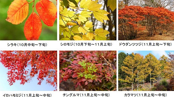 カエデやツツジの仲間など定番の紅葉木のほか、シロモジやコアジサイ、高山植物のチングルマなど多種多様な植物が赤色~黄色に色づきます。