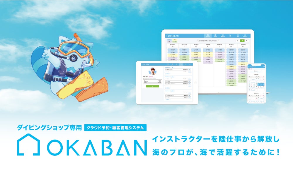 「OKABAN-陸番-」は、ダイビング業界に特化した業務効率化のためのSaaS(Software as a Service)です。ダイビングショップの日々の業務をデジタル化し効率的に処理することで、インストラクターやスタッフが本来の仕事に集中できるよう支援しています。