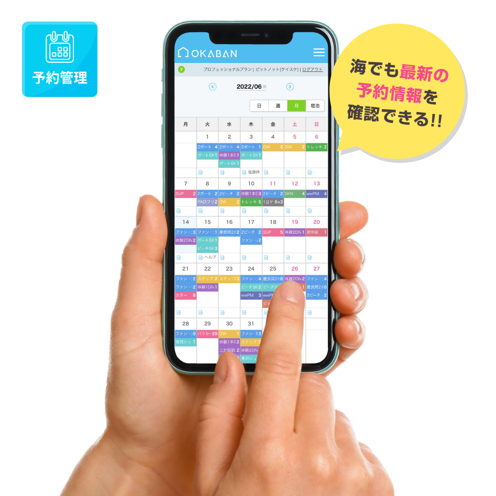 「OKABAN-陸番-」は予約からはじまる顧客管理に関するほぼ全ての事務作業をデジタル化することで業務効率化を実現します。人の業務負担を軽減することで、人材不足を補うことが可能です。ダイビングショップの業務は、海でゲストを案内するフィールド業務と、予約管理や名簿整理などのバック業務に分かれています。OKABANを導入してバック業務を自動化や効率化することで、スタッフはダイビングガイドや接客などの、顧客満足度に直接関わる業務に集中できるようになります。