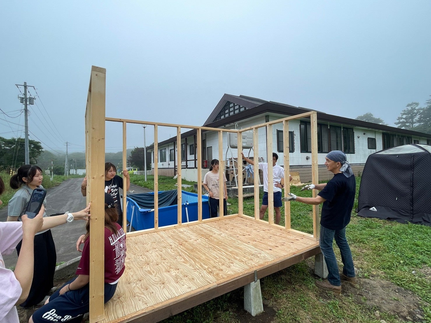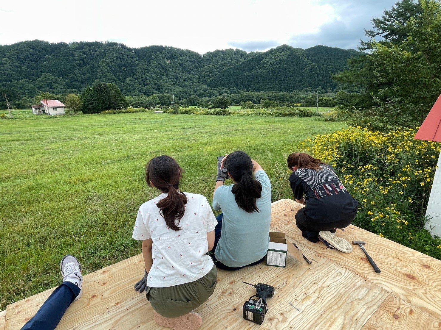 まさに今回のプロジェクトにはピッタリな場所です。校舎裏から見える牧草地越しの山々を見ながらのサウナはととのうこと間違いなし。