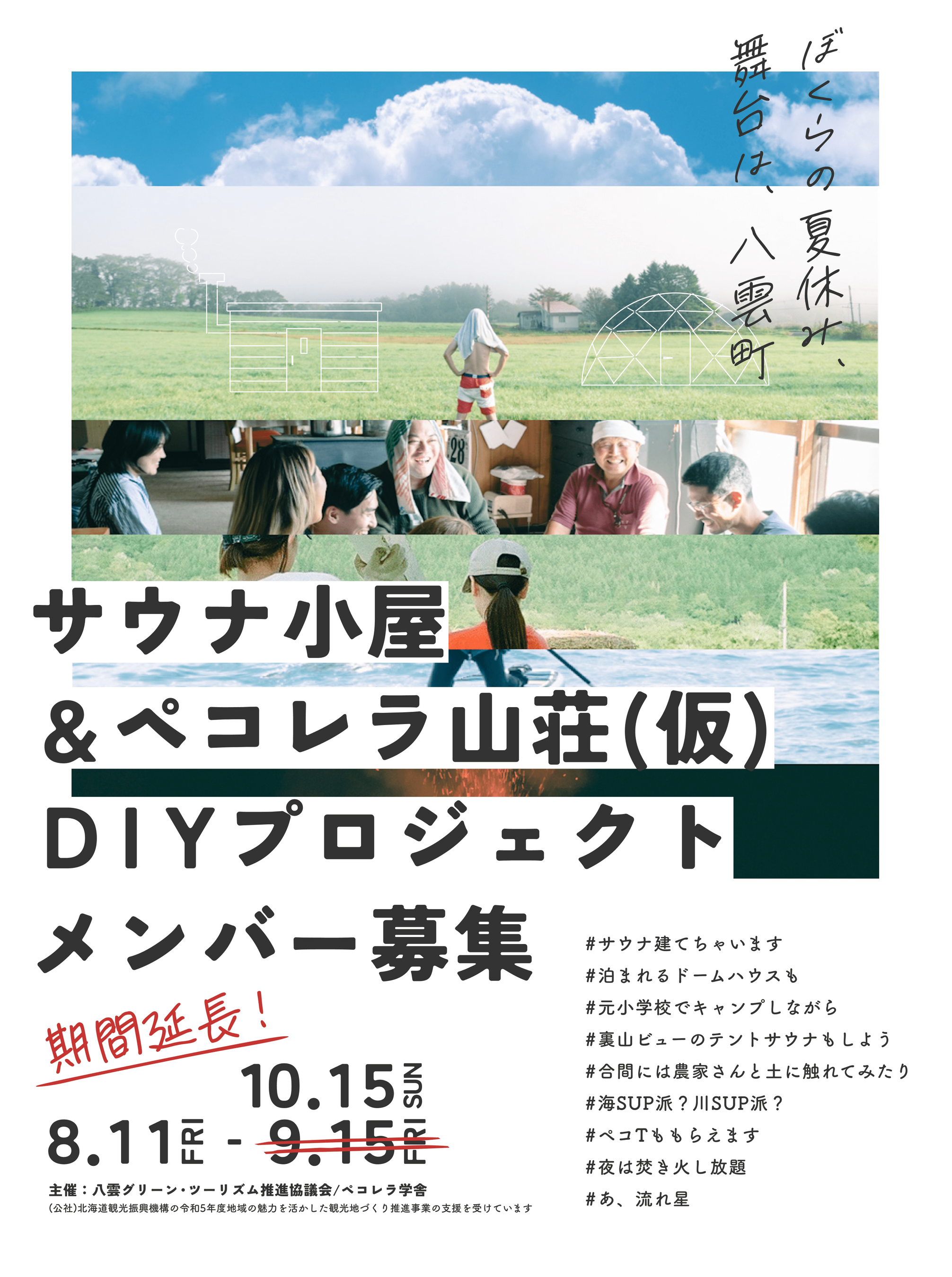 ・講師のスケジュールによって、DIY作業が実施できない場合がございます。その際はぺコレラ学舎などの運営業務をサポートいただくこととなります。あらかじめご了承ください。