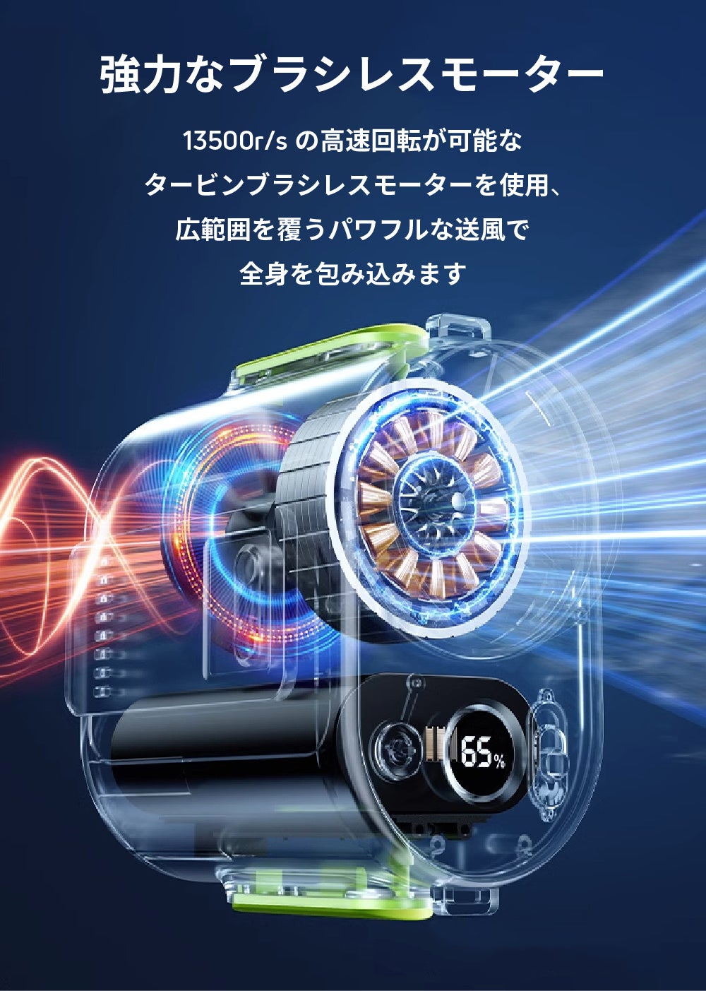 TurboCool X1は強力なブラシレスモーターを搭載し、小型でありながらも効率よく送風します。