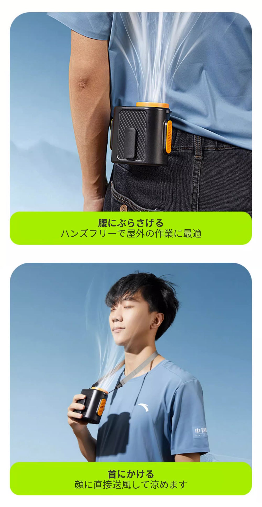 通勤や炎天下の作業をする方におすすめの、「腰に装着」&「首掛け」できる快適なファンが登場!