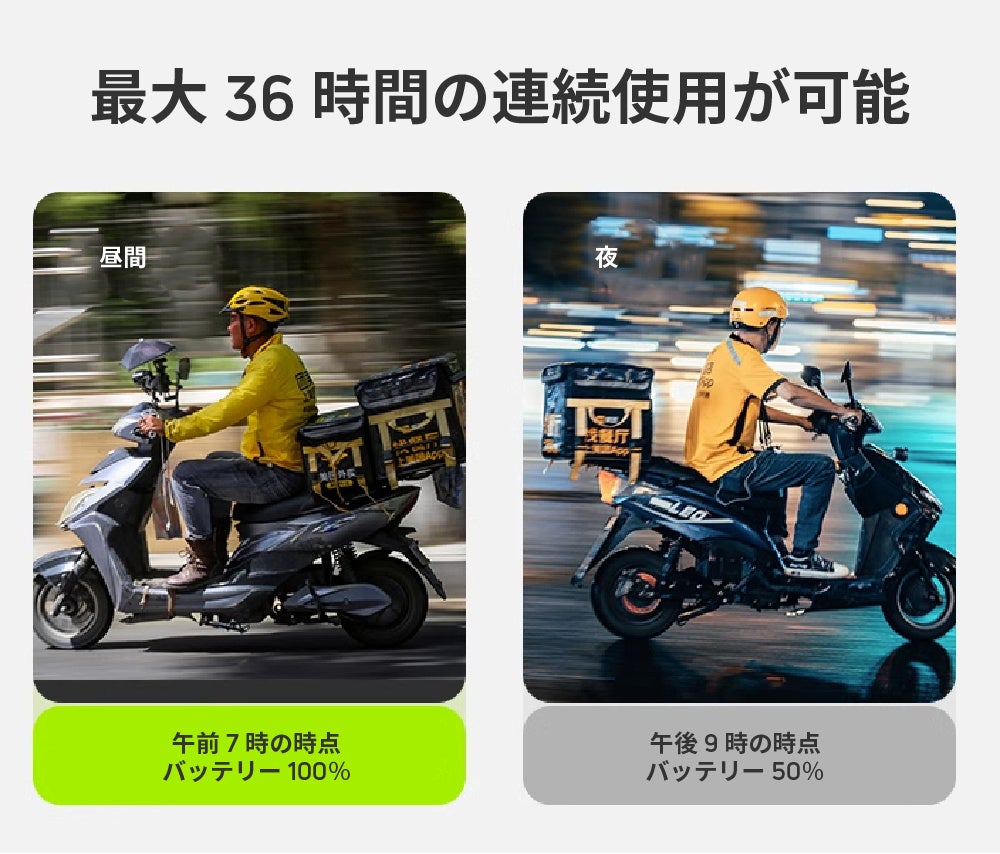 また、バッテリーは大容量のため、1日あたり12時間使用するとして、1回のフル充電でなんと約3日間快適に過ごすことができます。