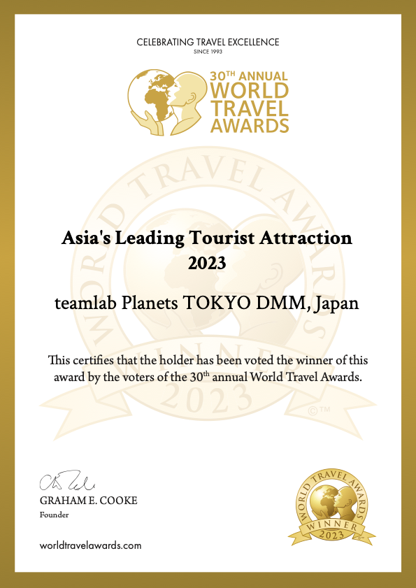 2023年9月6日(水)、ホーチミンで「ワールド・トラベル・アワード(World Travel Awards)」アジア部門の受賞セレモニーが開催。今最も世界をリードしている旅行先を表彰する「World’s Leading Tourist Attraction 2023」のアジア部門「アジアを代表する観光名所 2023(Asia’s Leading Tourist Attraction 2023)」を発表。チームラボプラネッツ(東京・豊洲)が、日本で初めて今最もアジアをリードする名所に認定されました。