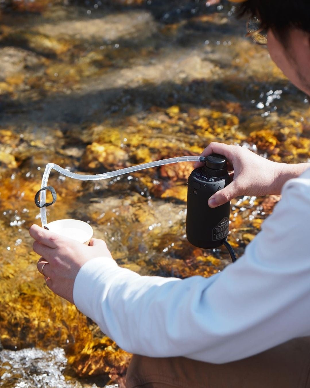 自然の水を、飲用可能な水に変えることのできるデバイスが、クラウドファンディングサイトにて先行発売致します。水源から1メートル離れた場所から、リチウムバッテリー駆動で自動的に取水が出来るので、非常に便利な上に、安全です。