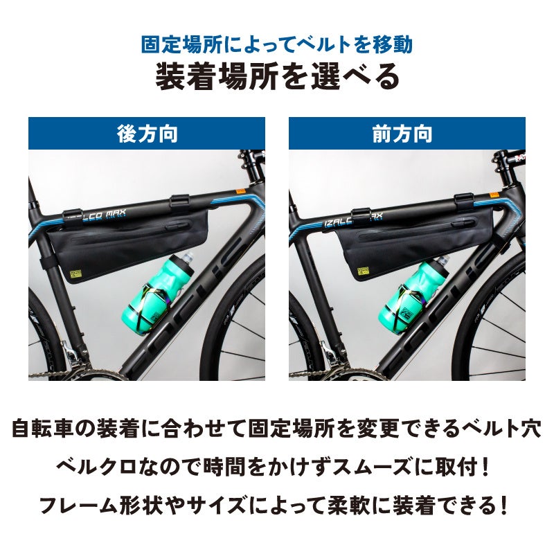 ロードバイクやクロスバイク、マウンテンバイクなどのフレームに取付けできる自転車用フレームバッグです。