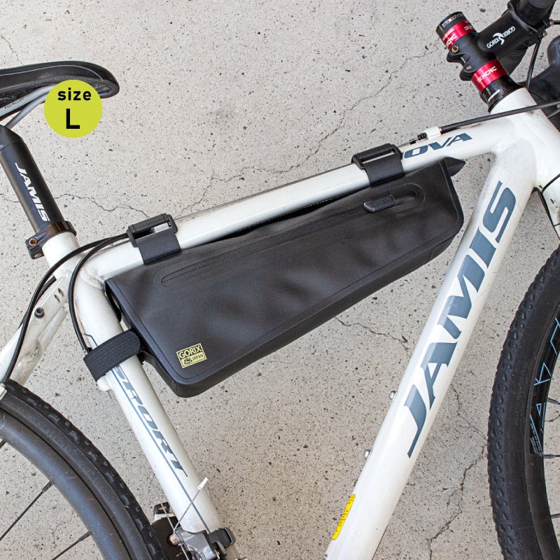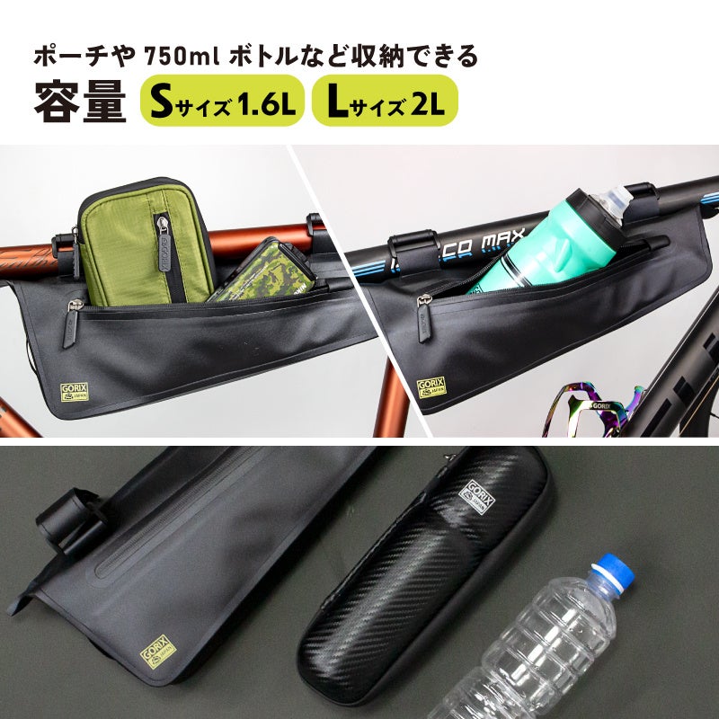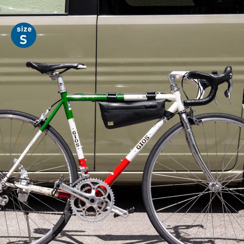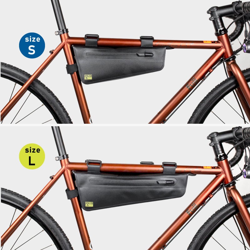 フレームの空きスペースを有効活用。フレームバッグはSとLサイズの2サイズ選択可能です。