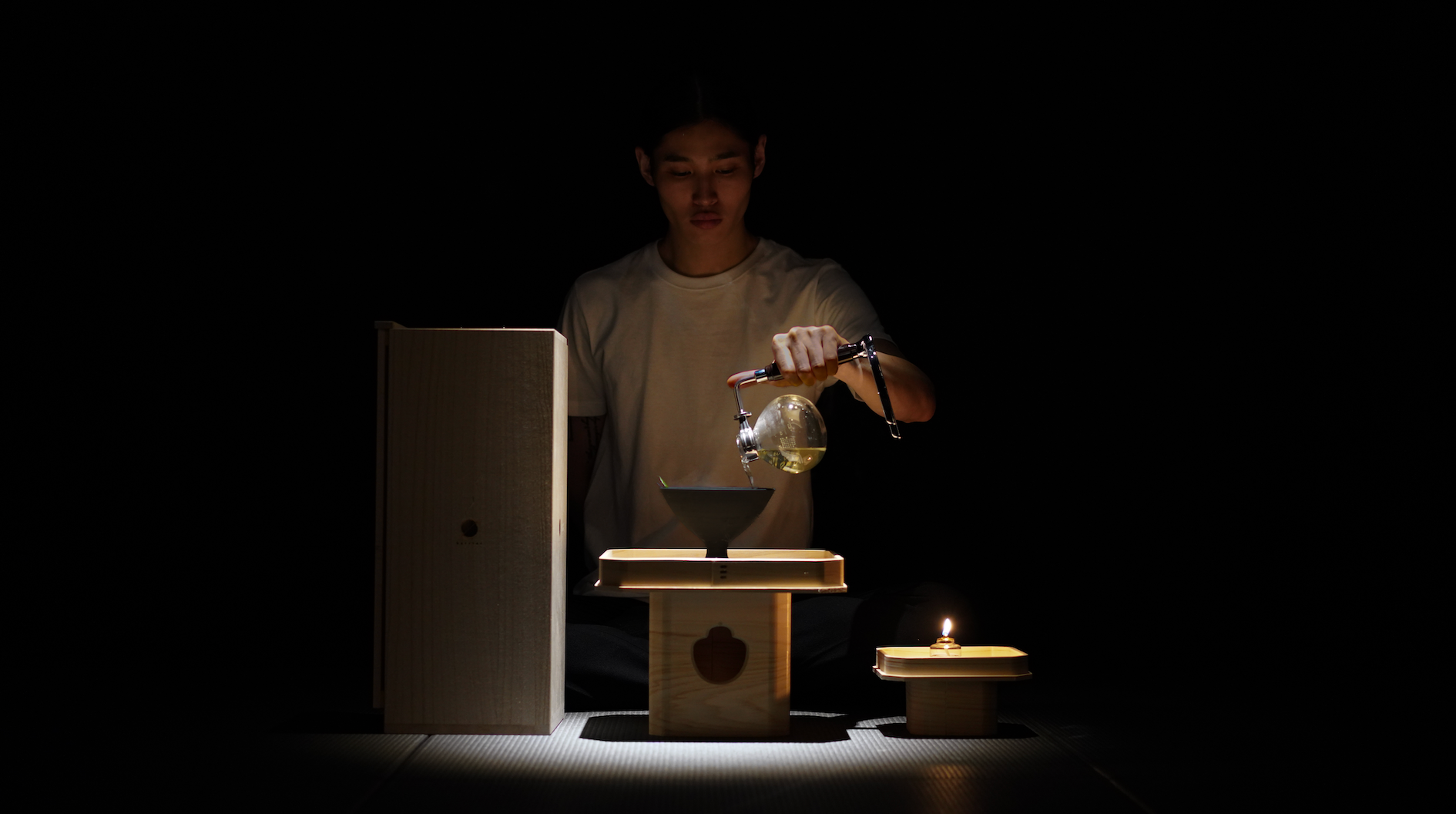 「barrier=結界」をコンセプトに、賑わいのある金沢市街の中心にありながら、喧騒とは線をひき、界を結して、古えと現代、陰と陽の対比を感じていただく神聖な空間をつくる結界をイメージしました。古民家を繊細にリノベーションした空間は、アートと料理が絶妙に結びつき、お客様が時間や空間を超えた旅に出るかのような体験を提供します。料理は三方(さんぼう)をお膳として利用し、岡持ち(おかもち)に収められた三つのお椀料理に、サイフォンで抽出された一番出汁を注ぎます。伝統と革新が見事に調和した漆黒の空間で五感を研ぎ澄ませて、出汁の新しい世界を体験してください。
