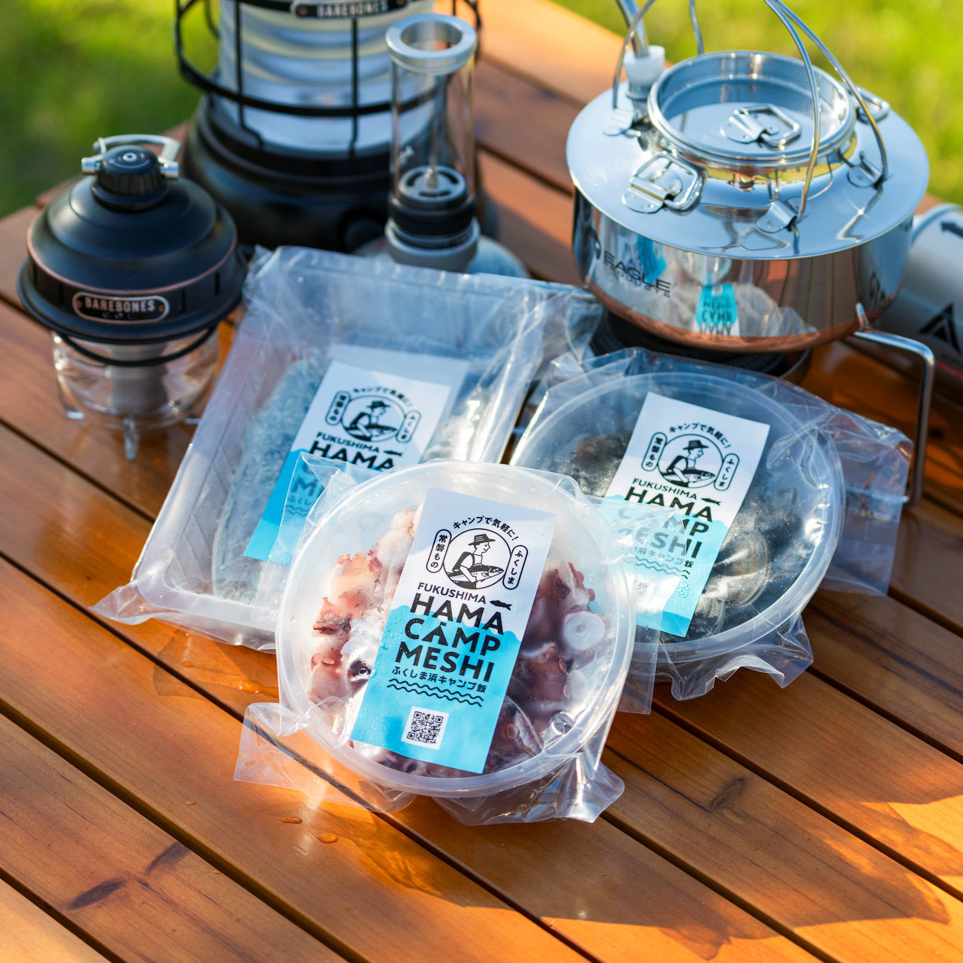 この度、ふくしまで水揚げされた魚介類をアウトドア・キャンプでも気軽に食べられるように加工した「お魚パック」のシリーズが完成しました。