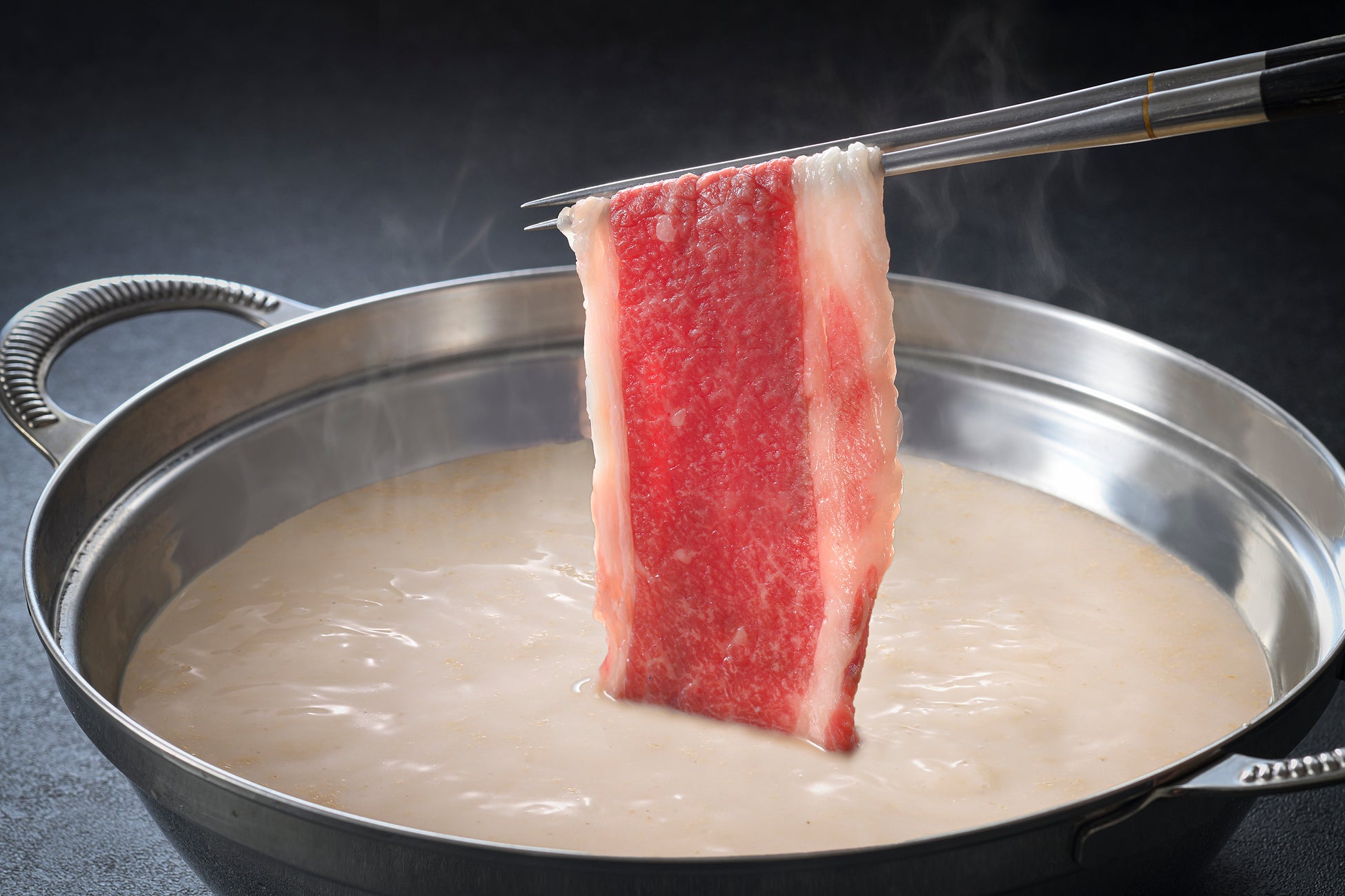 柔らかな食感と濃厚な旨みが特長の博多和牛を、練りごまのコクと風味を利かせた出汁にくぐらせます。ジューシーで味わい深い肉質と、芳ばしいごまの香りが食欲をそそります。