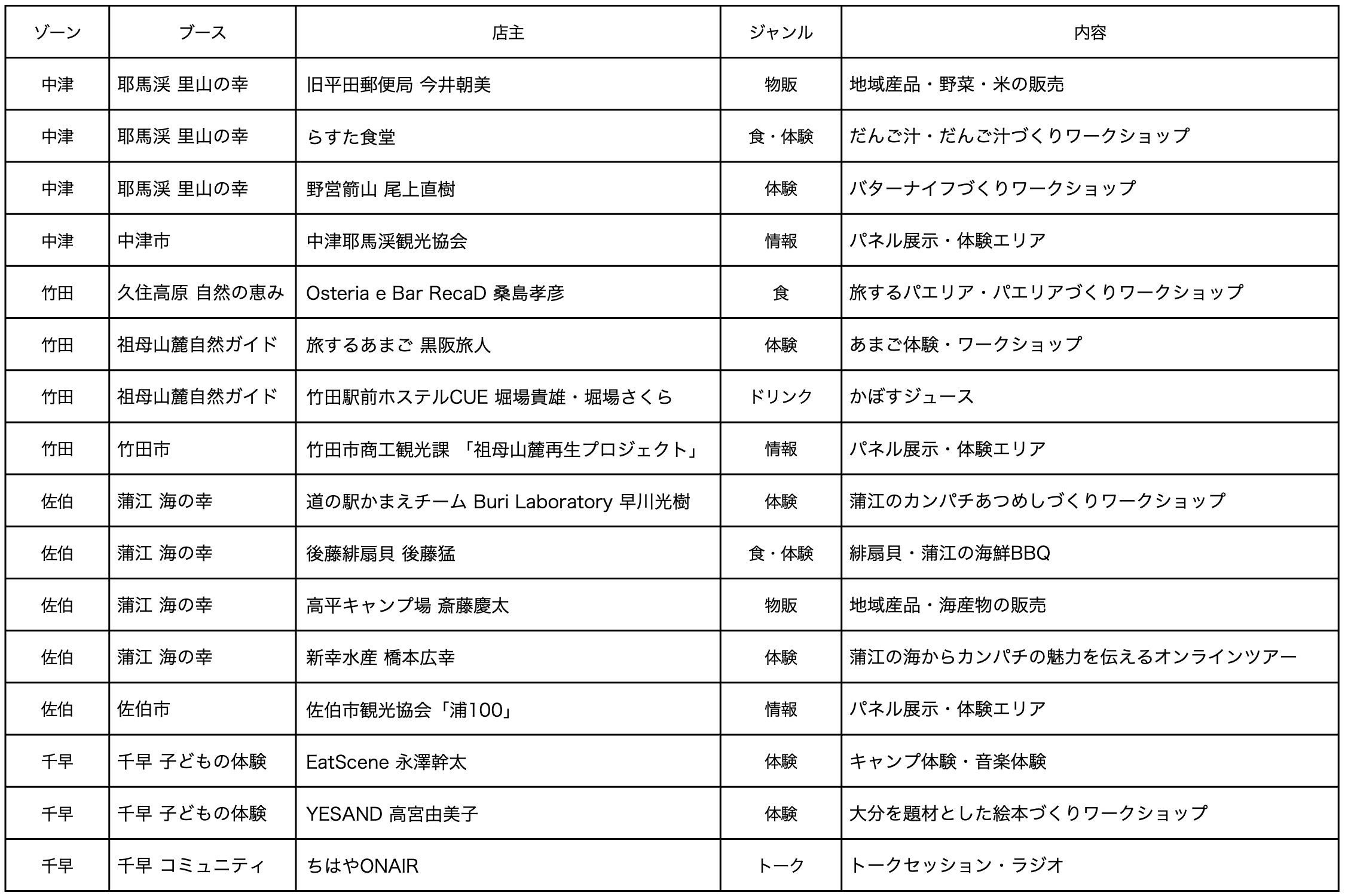 出店者:大分県中津市・佐伯市・竹田市を中心とした飲食・物販事業者・生産者