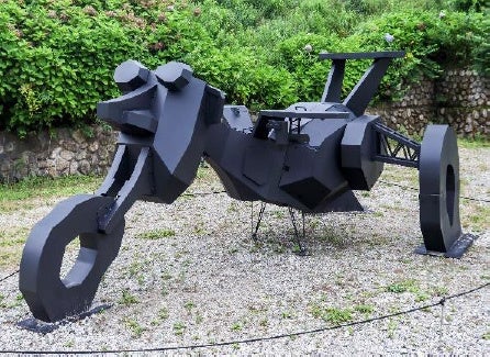 このフライングギドラは誰もが見たこともないような物体を目指しました。飛行機にもクルマにもバイクにも怪物にも見えるけど、そのいずれでもなく合体してます。各部の造形はかつての漫画やアニメから影響を受けております。合体や組み合わせは新しいものを生み出すのには大事な要素です。何かわからないけど驚くような体験をこの作品で楽しんでください。(橘)