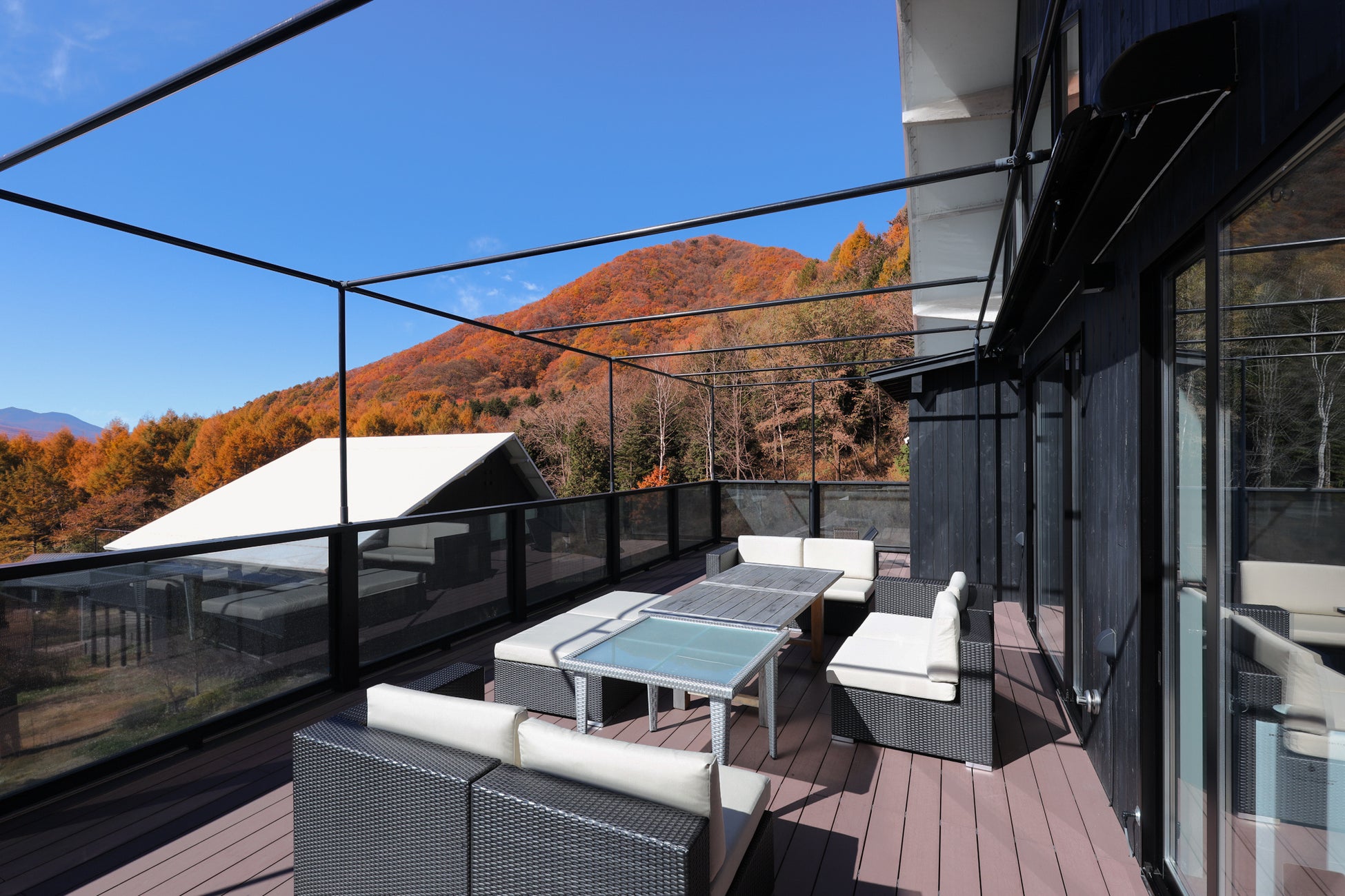 到着当日は、あさま空山望にチェックインし、客室のデッキテラスから紅葉や浅間山ビューの絶景を堪能。そして、森林浴をしながら読書をしたり、サウナを楽しみながら秋風で外気浴をしたり、秋を感じながら思い思いの優雅な時間をお過ごしください。