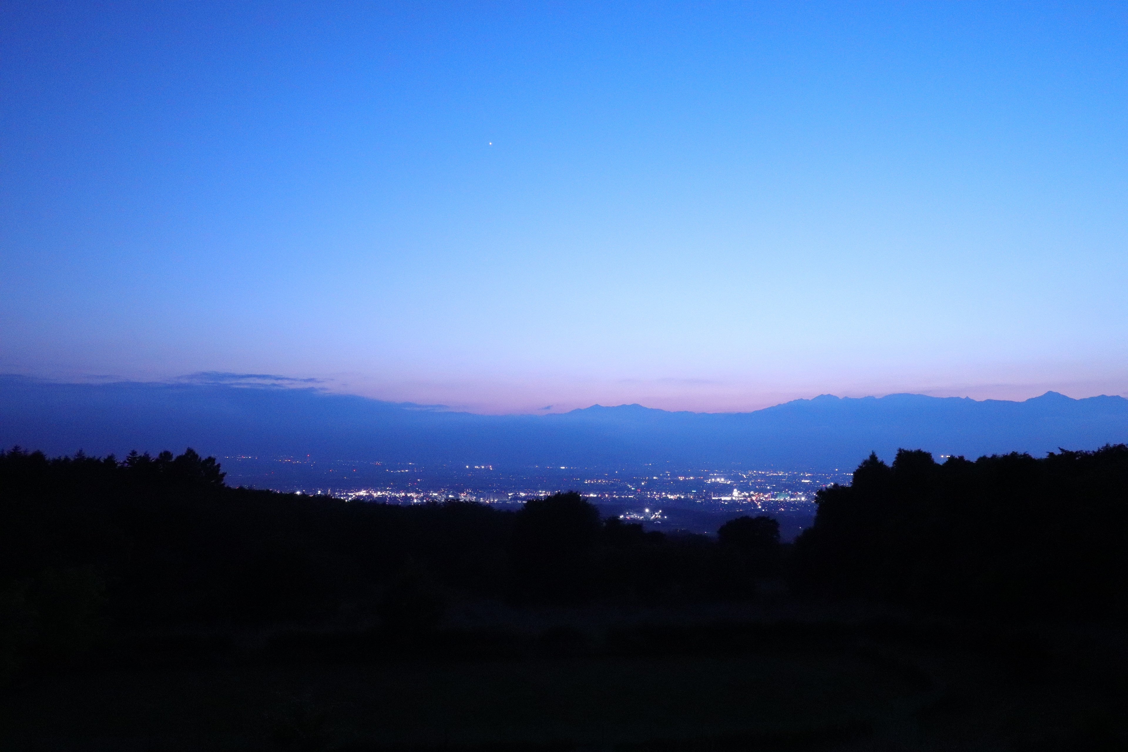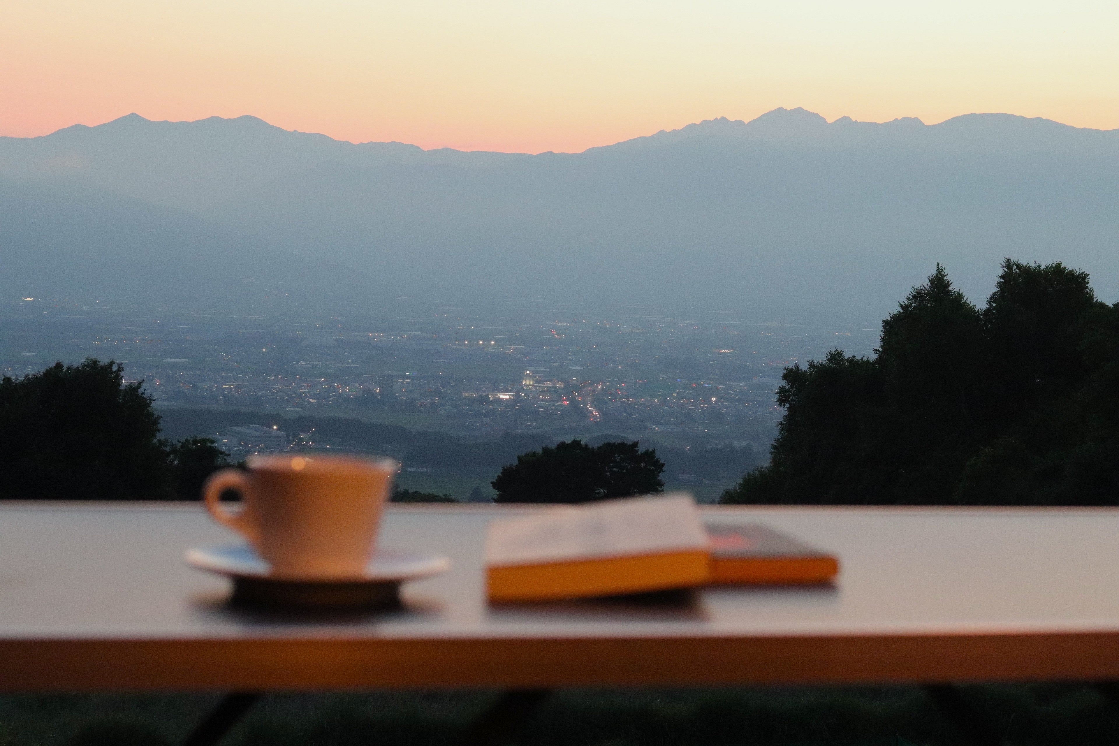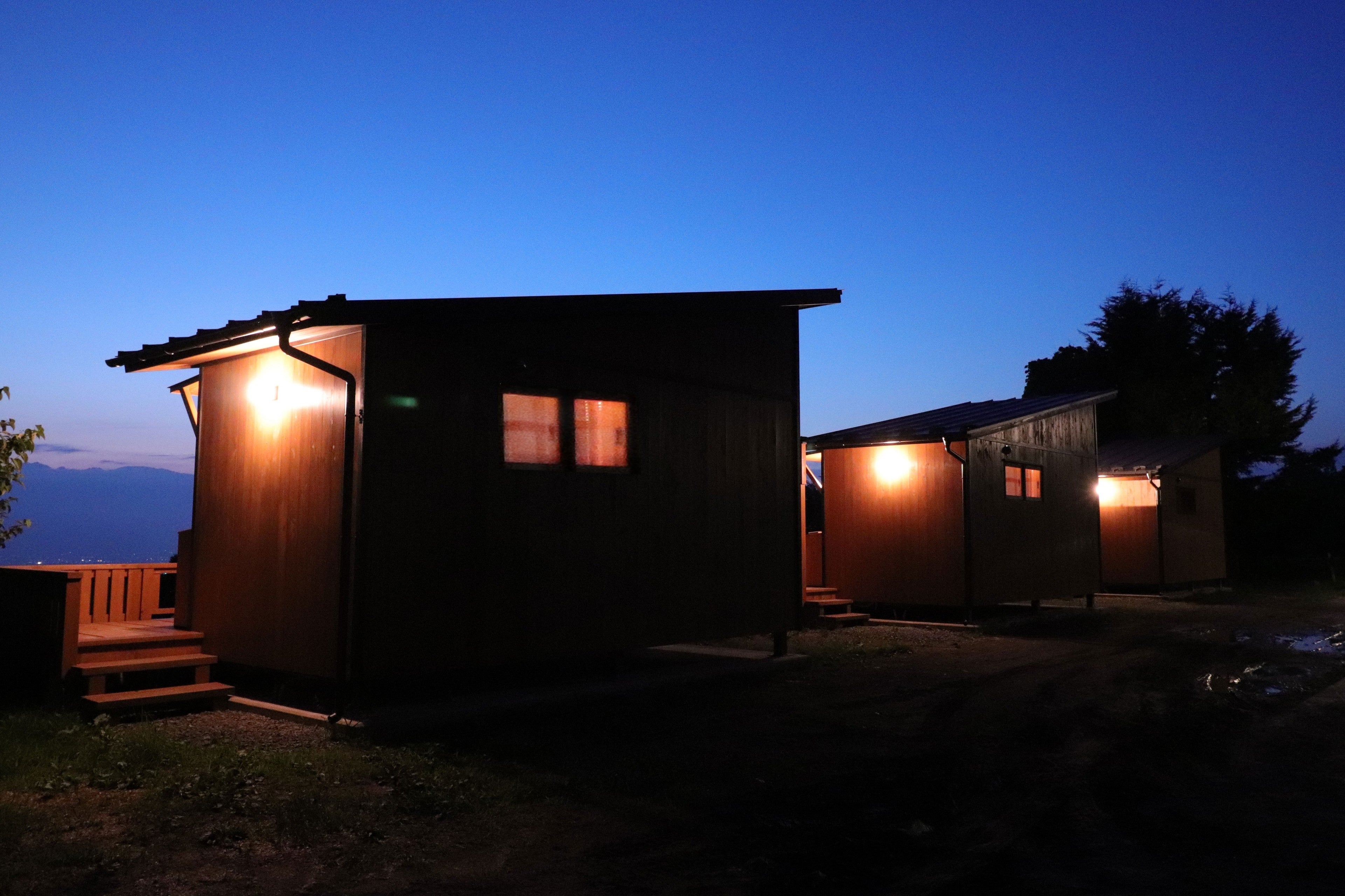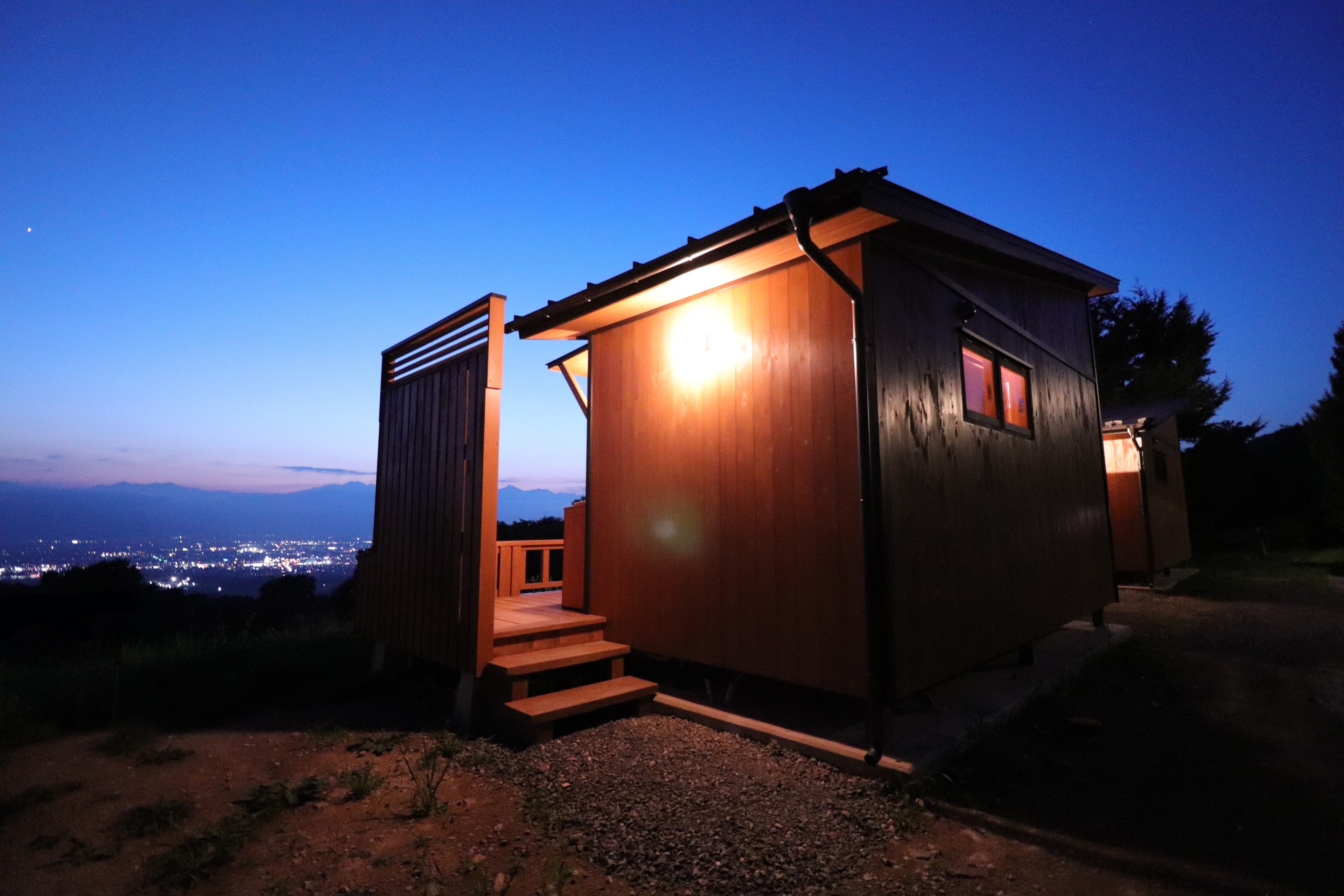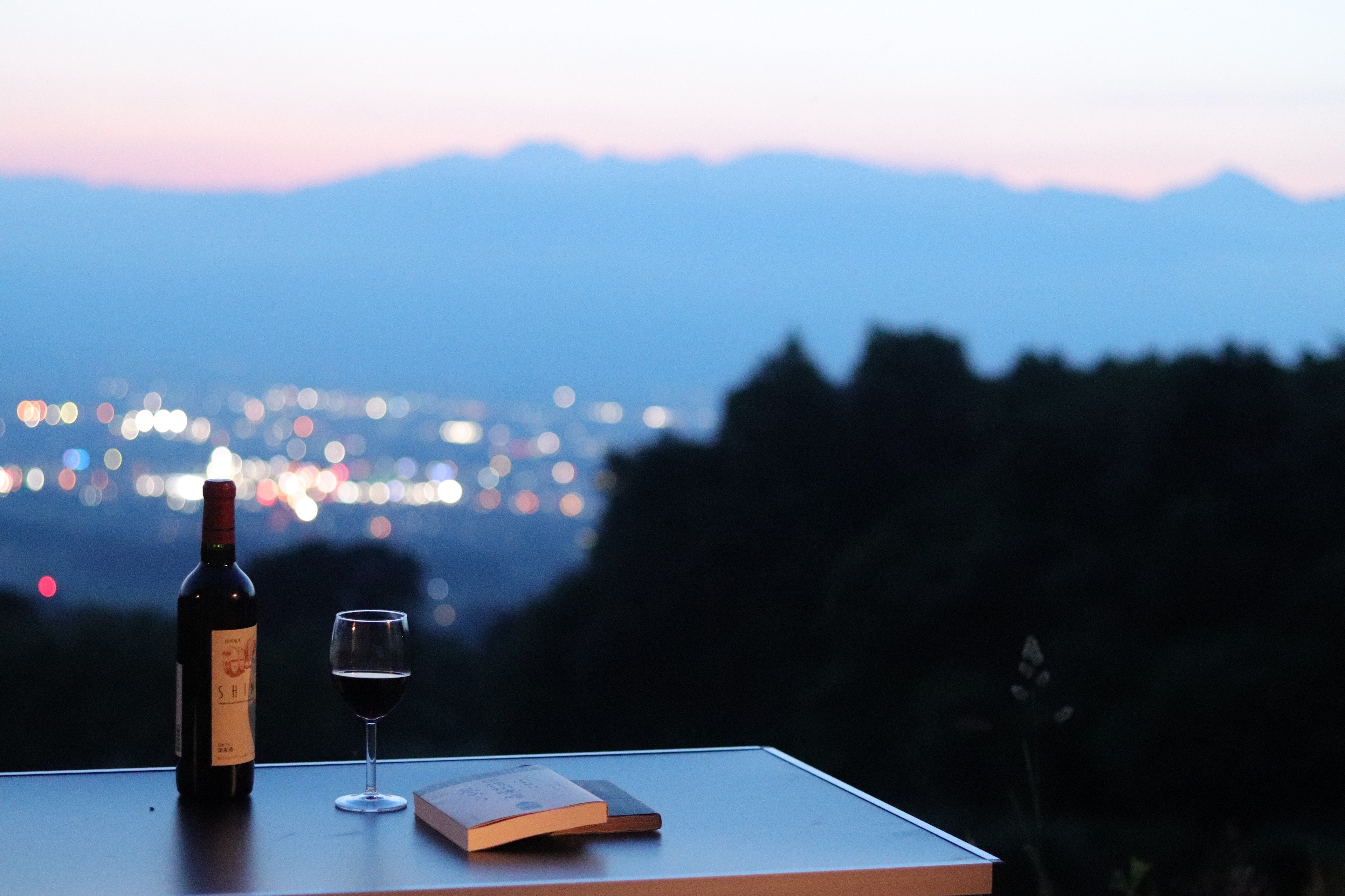 松本市街地周辺の温泉地・シティホテルでは見ることができない絶景を、コテージのテラスやベッドルームの窓辺から一望できます。夕日が沈み、街あかりが灯り、満天の星空へと移る景色を眺めながら、ゆったりと心安まるひと時をお過ごしいただけます。