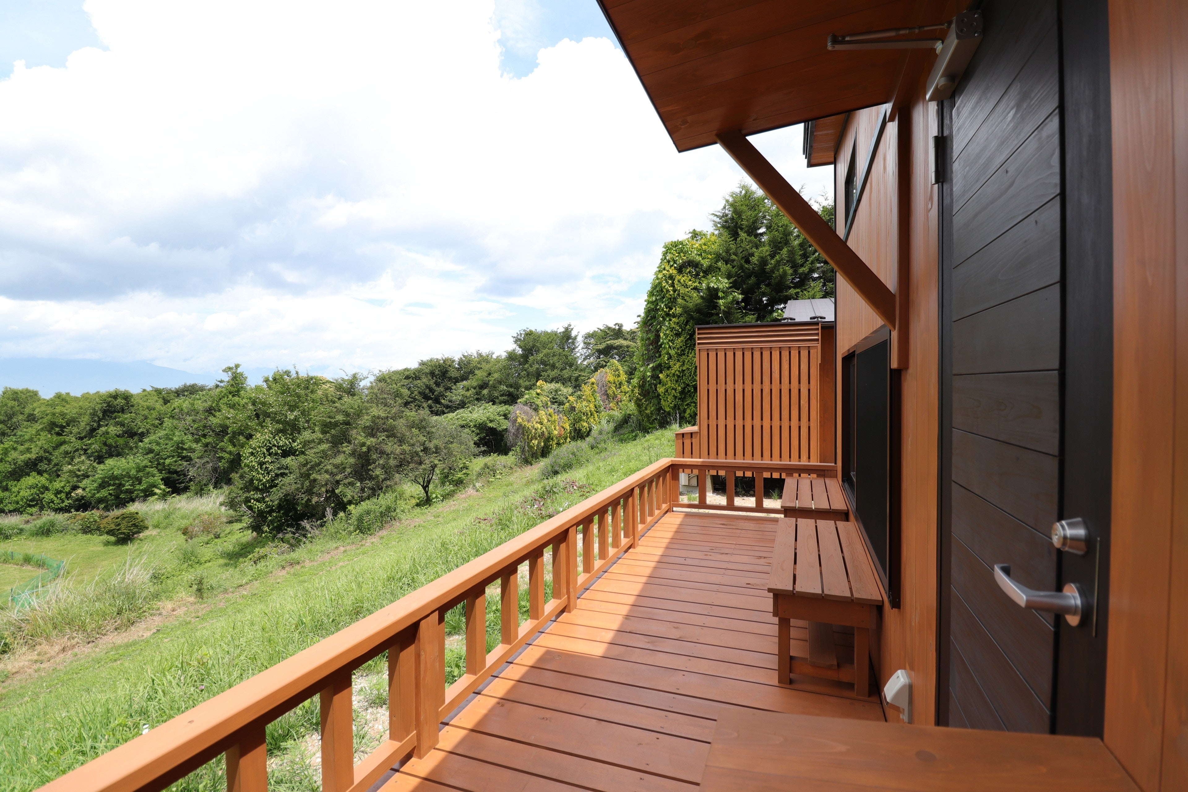 しかしながら、県内外ともに崖の湯温泉の知名度は低く、もっと多くのお客様にこの素晴らしい景色を知って頂きたいという想いから、当館の広大な敷地の中でも一番の絶景スポットに、プライベートな空間で景色をひとり占めできる3棟のコテージ『AkaneVilla』を新設しました。市街地では見られない、ここだけの松本の景色をお楽しみいただけます。