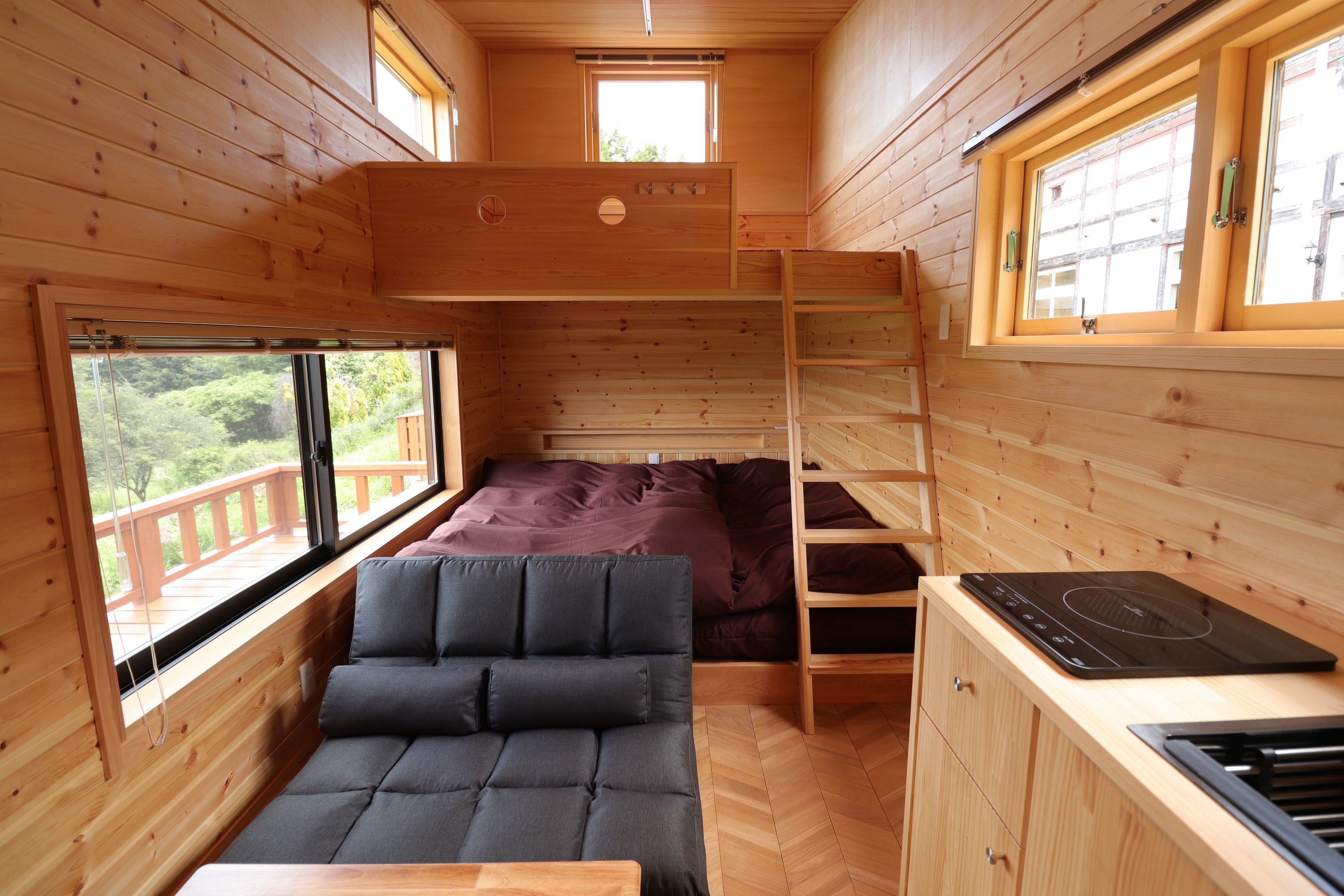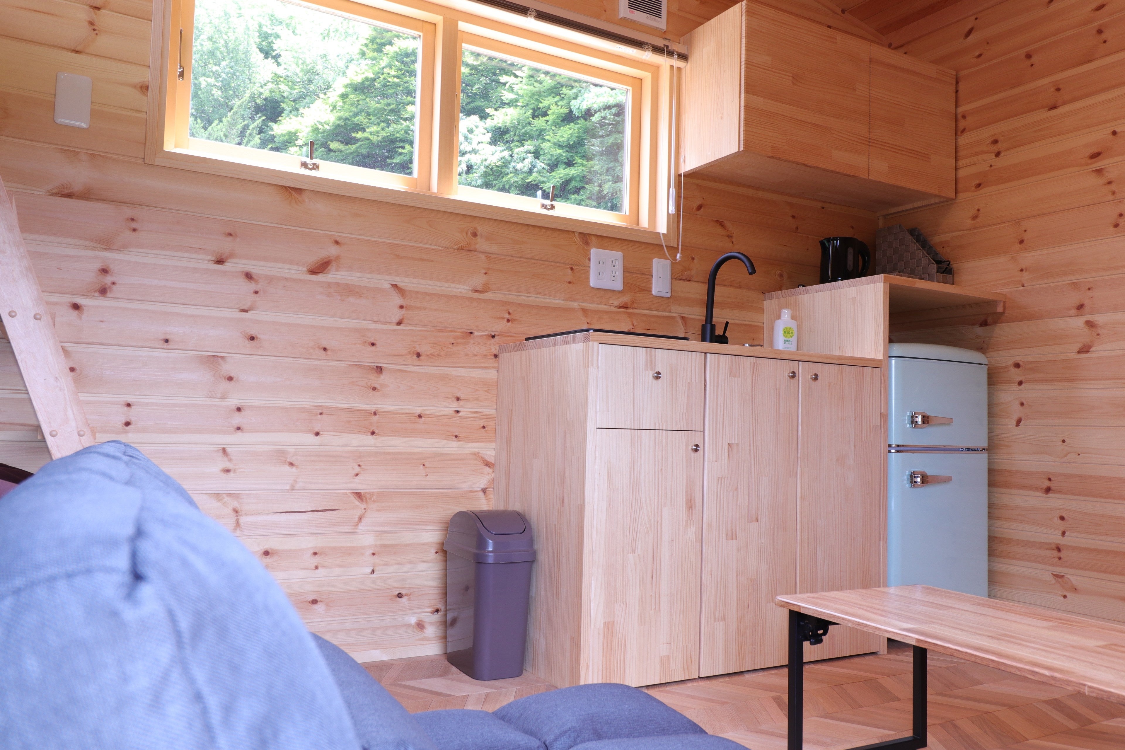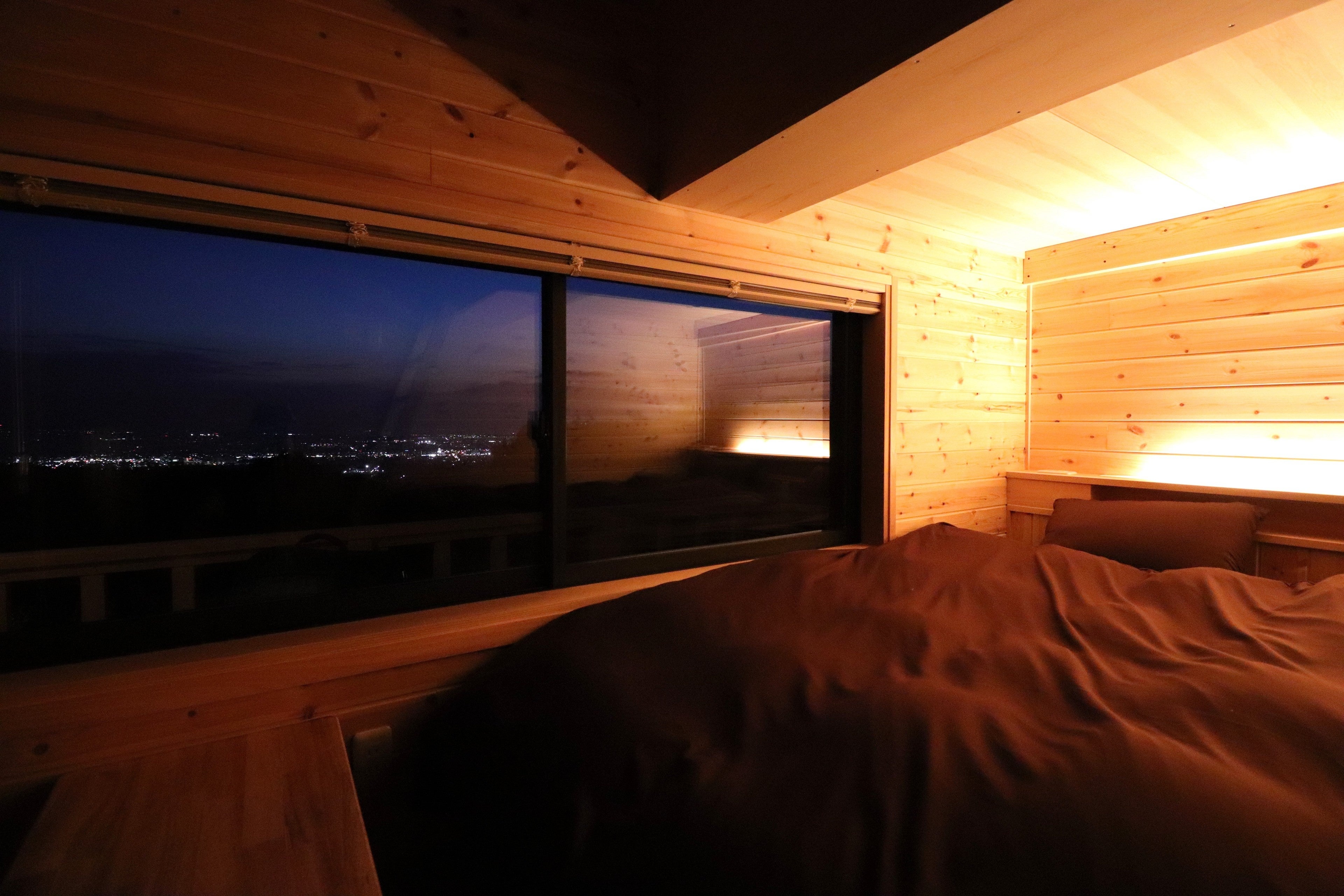 『AkaneVilla』は9平米ロフト付きと小さなコテージですが、冷暖房完備、ミニキッチン、WiFi、冷蔵庫、調理器具など充実した設備を備えています。お気に入りのワインやコーヒーを持ち寄り、一人で書斎のように読書やワーケーションとしての活用や、ご夫婦、カップル、ご友人と景色を眺めながら語り合うひと時など、気兼ねなく別荘のように過ごしていただきたいという想いから『小さなお家』と名付けました。眺望の美しさだけではなく、里山の森林に囲まれた敷地内では、早朝から小鳥のさえずりが聴こえ、心地よい目覚めを体感できます。