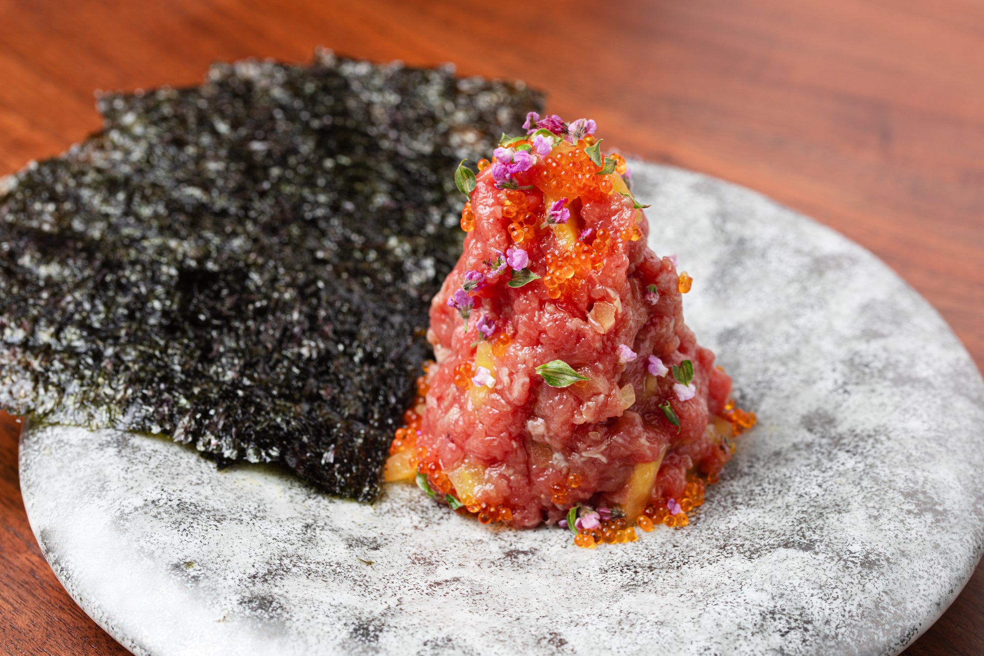 ・炙りラム肉ユッケ〜卵黄添え〜 990円(1,089円)