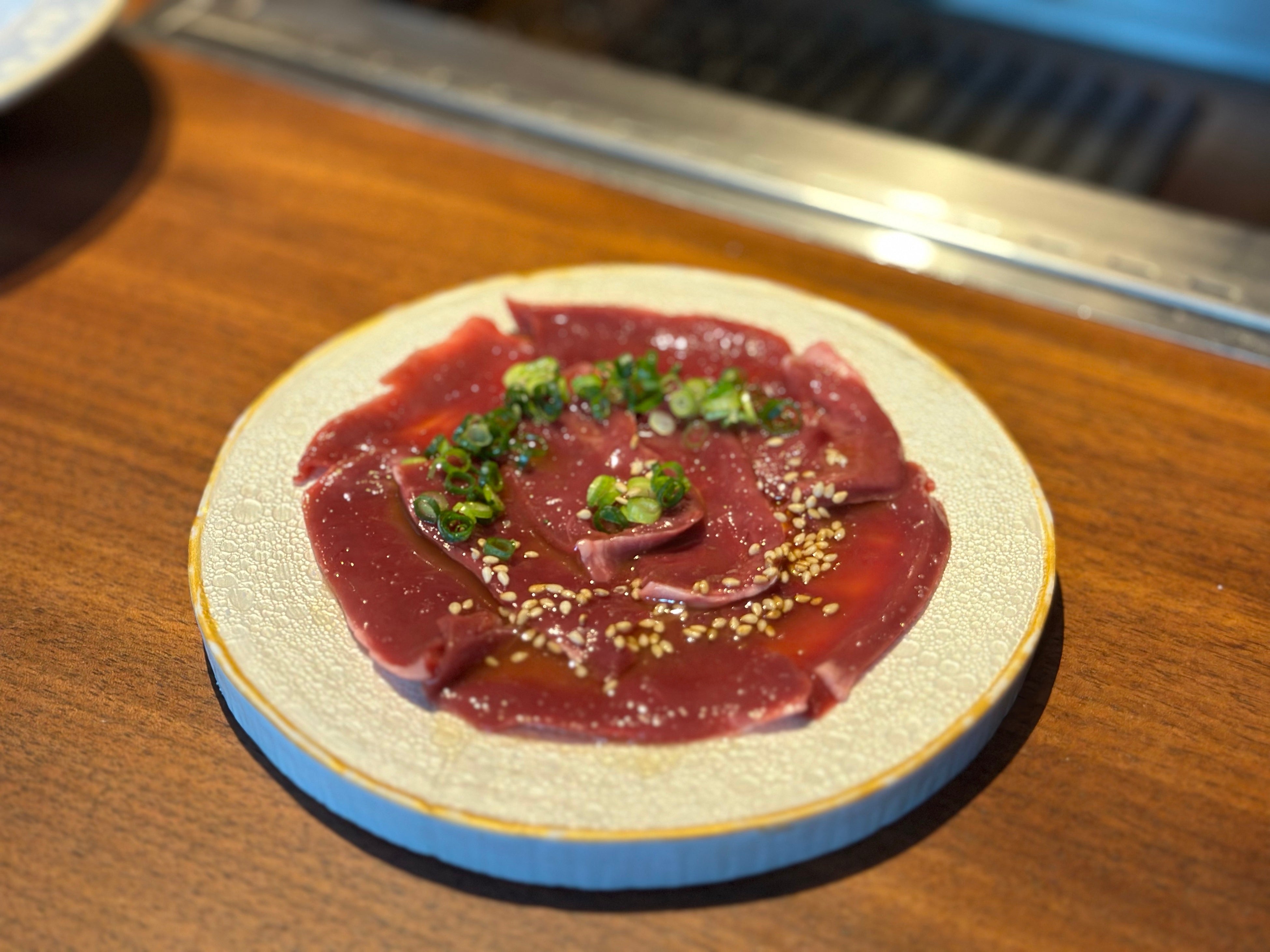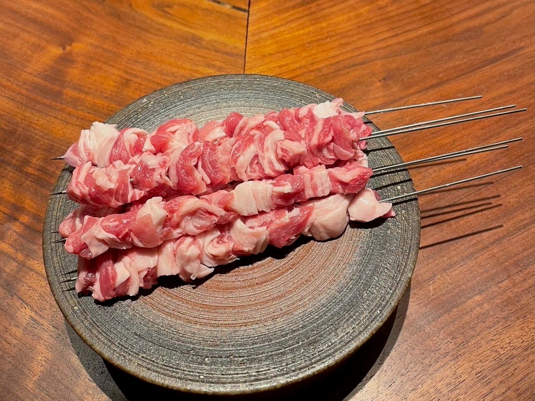 極薄切りにしたハツを表面だけサッと炙って食感をお楽しみください。