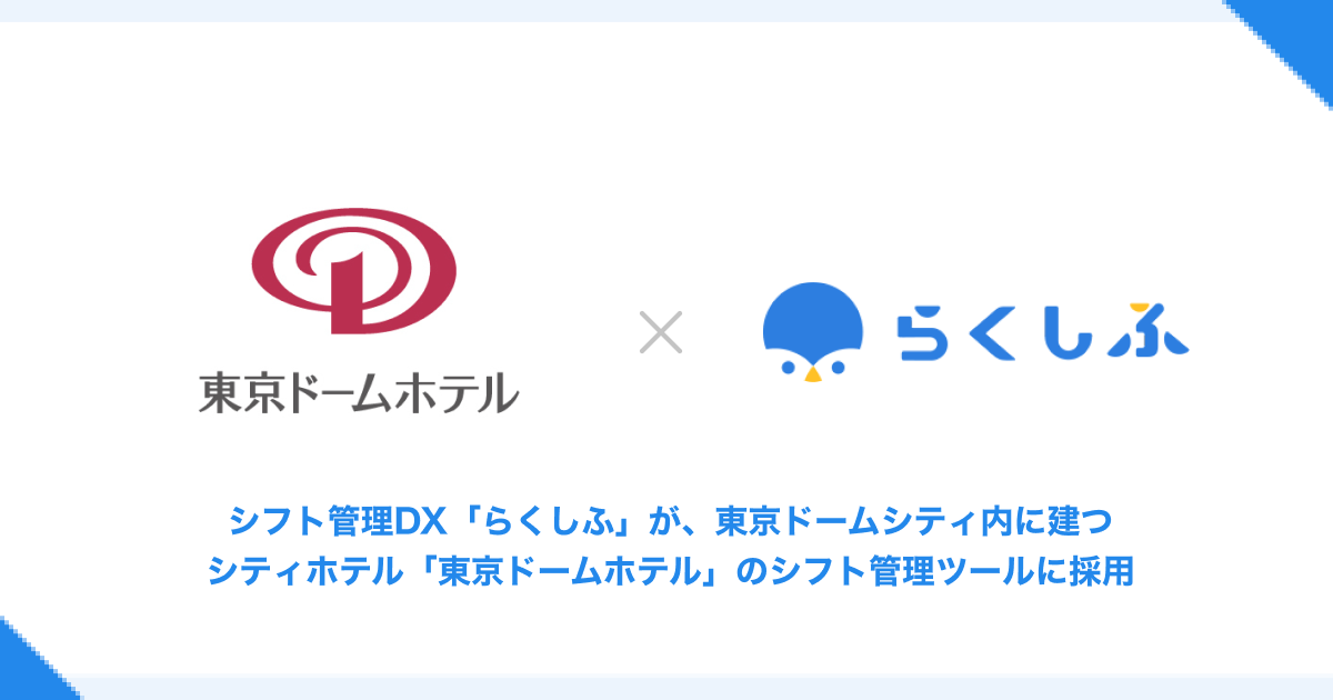 デスクレスワーカー向けのヒューマンマネジメントプラットフォームを提供する株式会社クロスビット(東京都品川区、代表取締役社長 小久保 孝咲 、以下「クロスビット」)は、株式会社東京ドームホテル( 東京都文京区 、代表取締役社長 棟方 史幸、以下「東京ドームホテル」)のシフト管理DXツールに「らくしふ」が採用されたことをお知らせします。